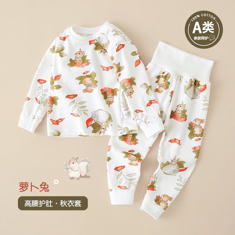 봄과 가을 아기 높은 허리 배꼽 보호 속옷 세트 소년 소녀 가을 옷과 가을 바지 아기 어린이 면화 홈 옷 귀여운스토어 가기
