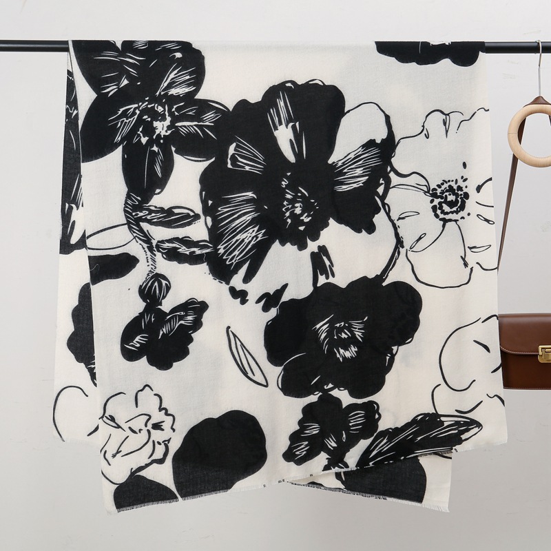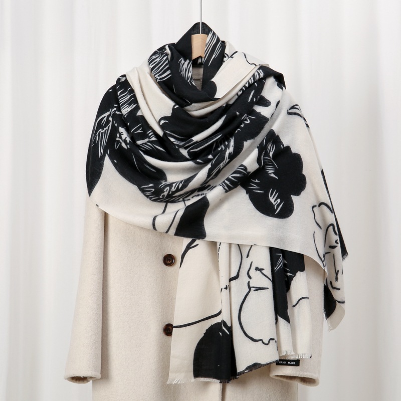 대외 무역 국경 간 라이브 방송 새로운 가을 및 겨울 피부 친화적 인 따뜻한 보관 캐시미어 인쇄 스카프 잉크 꽃 간단한 모든 일치 목도리