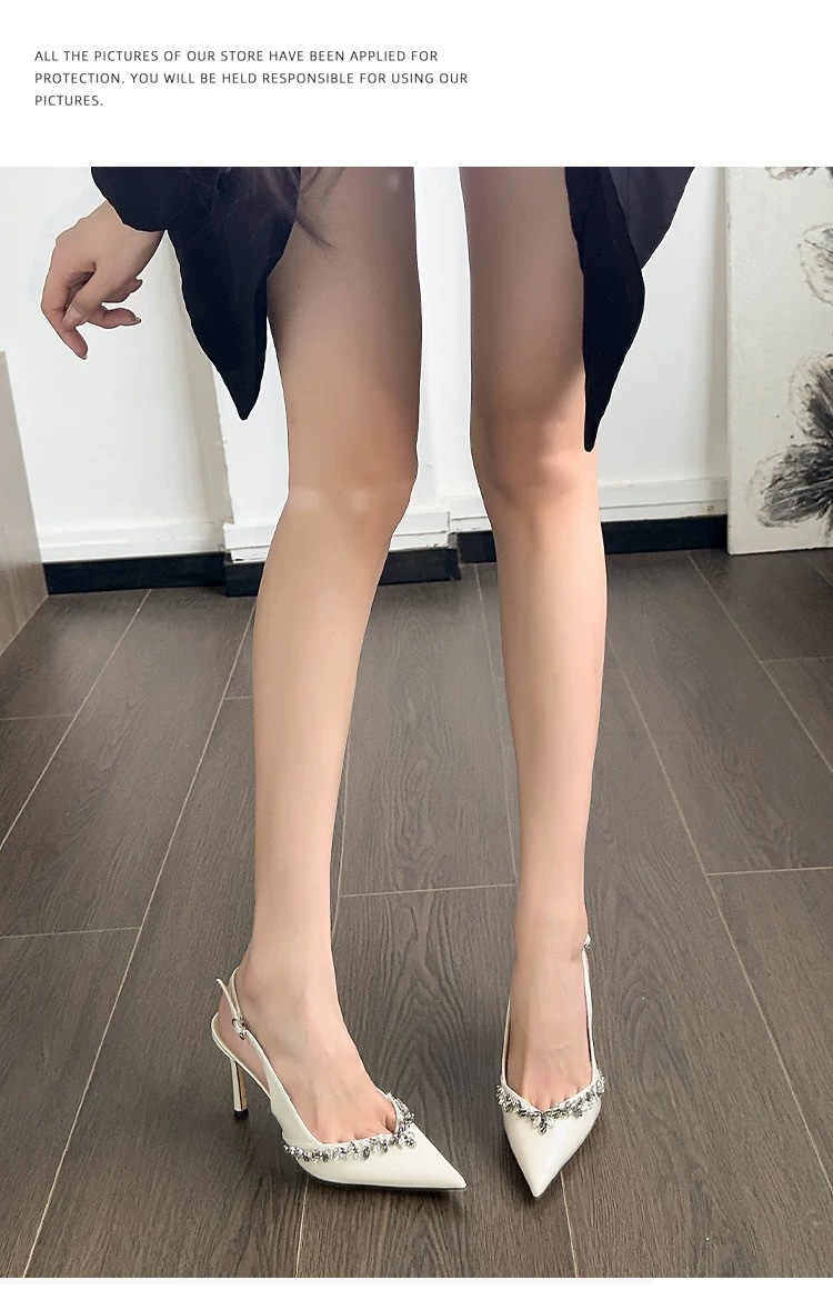 2025 새로운 프렌치 누드 컬러 라인스톤 스틸레토 하이힐, 여성스럽고 섹시한 포인티드 토 섹시 원스트랩 샌들