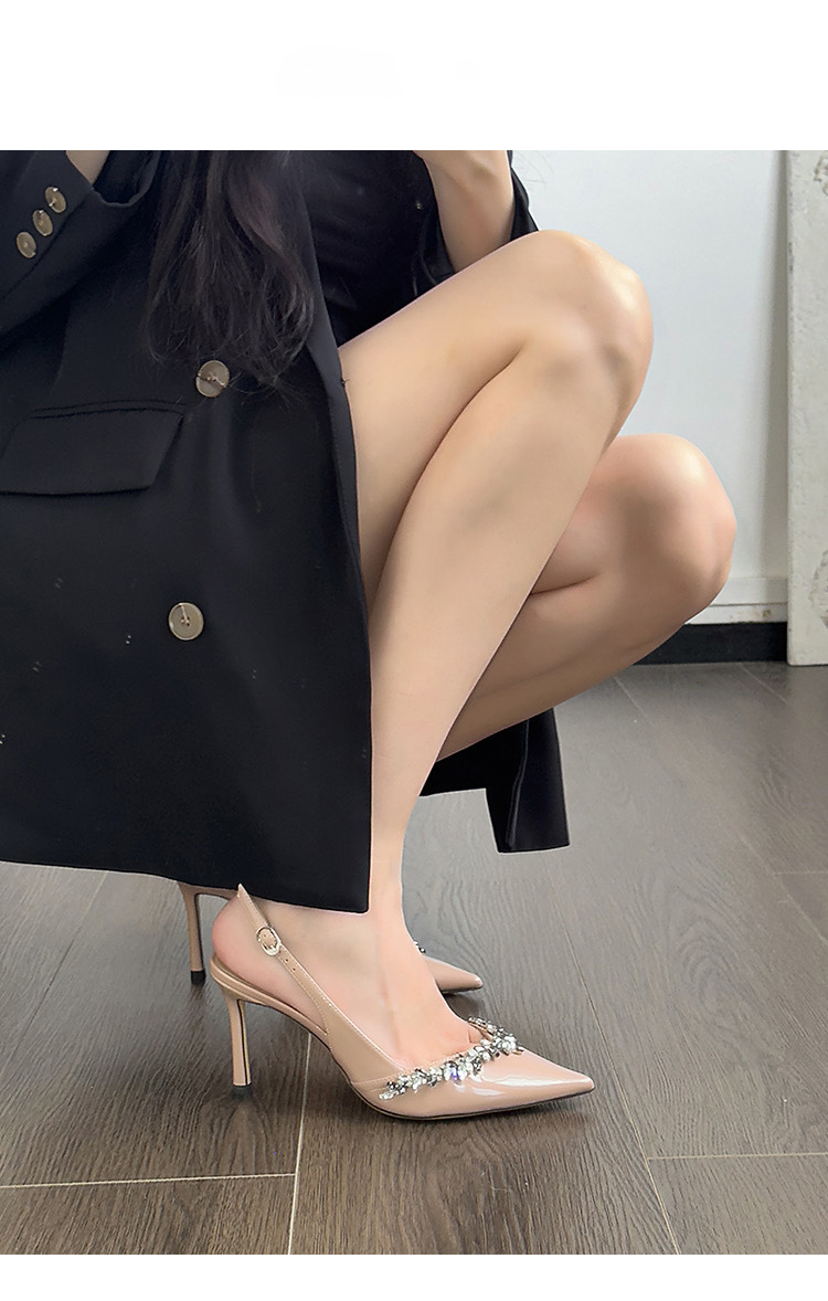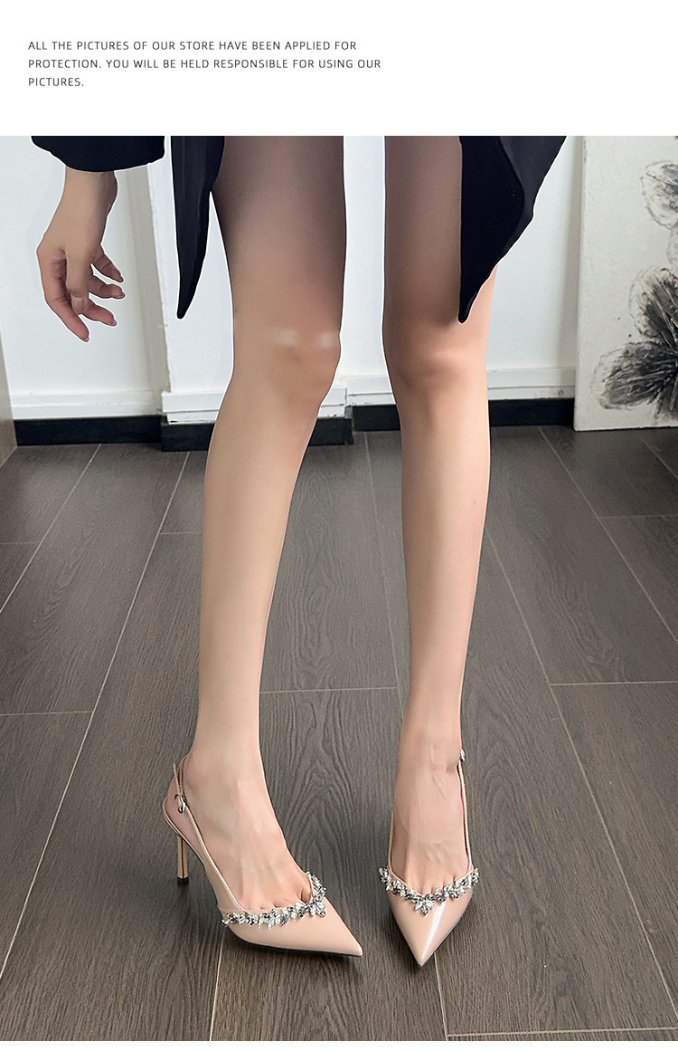 2025 새로운 프렌치 누드 컬러 라인스톤 스틸레토 하이힐, 여성스럽고 섹시한 포인티드 토 섹시 원스트랩 샌들스토어 가기