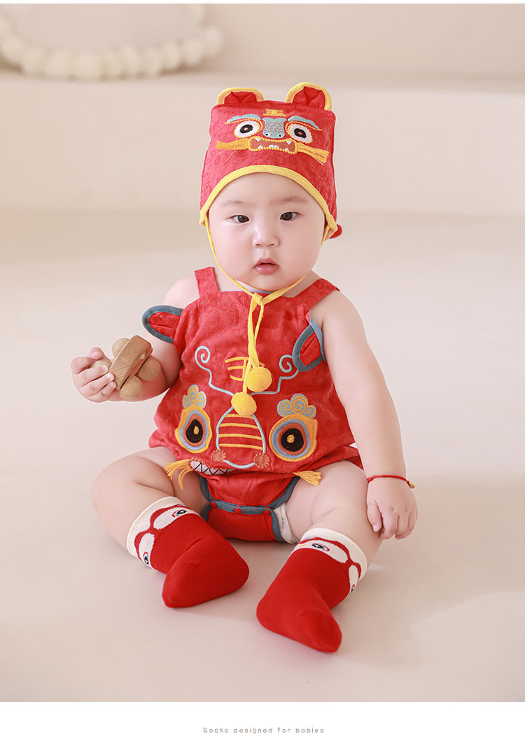 아기 새해 붉은 양말 가을과 겨울 새 붉은 새해 아기 새해 생일 보름달 백일 양말
