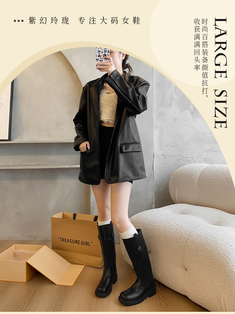 712-2 통통녀 플러스 사이즈 여성용 부츠 두꺼운 다리 큰 튜브 높은 부츠 두꺼운 하단 라이더 부츠 41-43스토어 가기