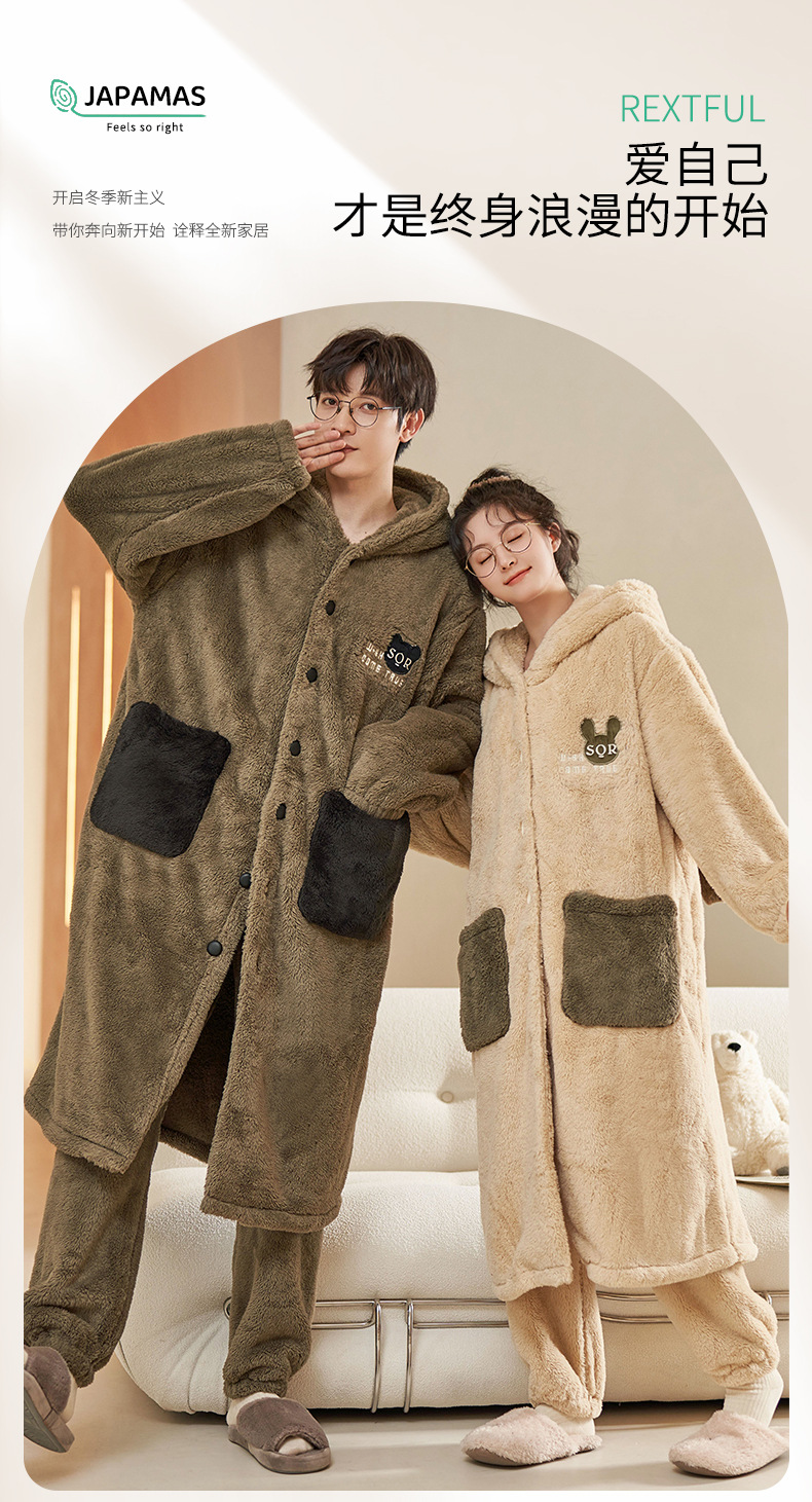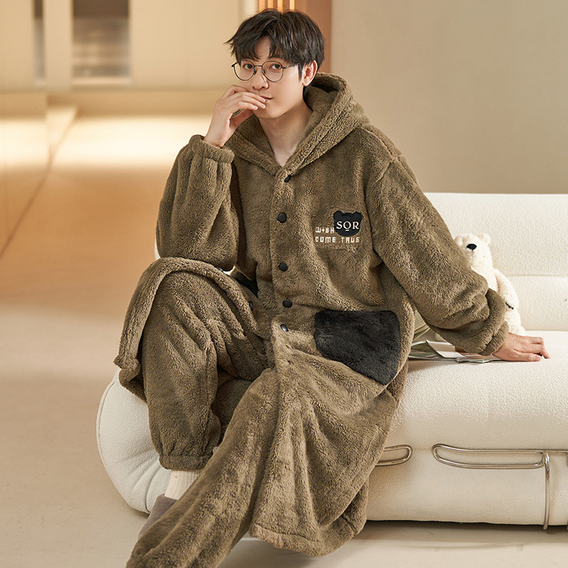 플란넬 커플 나이트가운 여성의 겨울 두꺼운 산호 양털 파자마 추가 긴 목욕 가운 홈 의류 세트