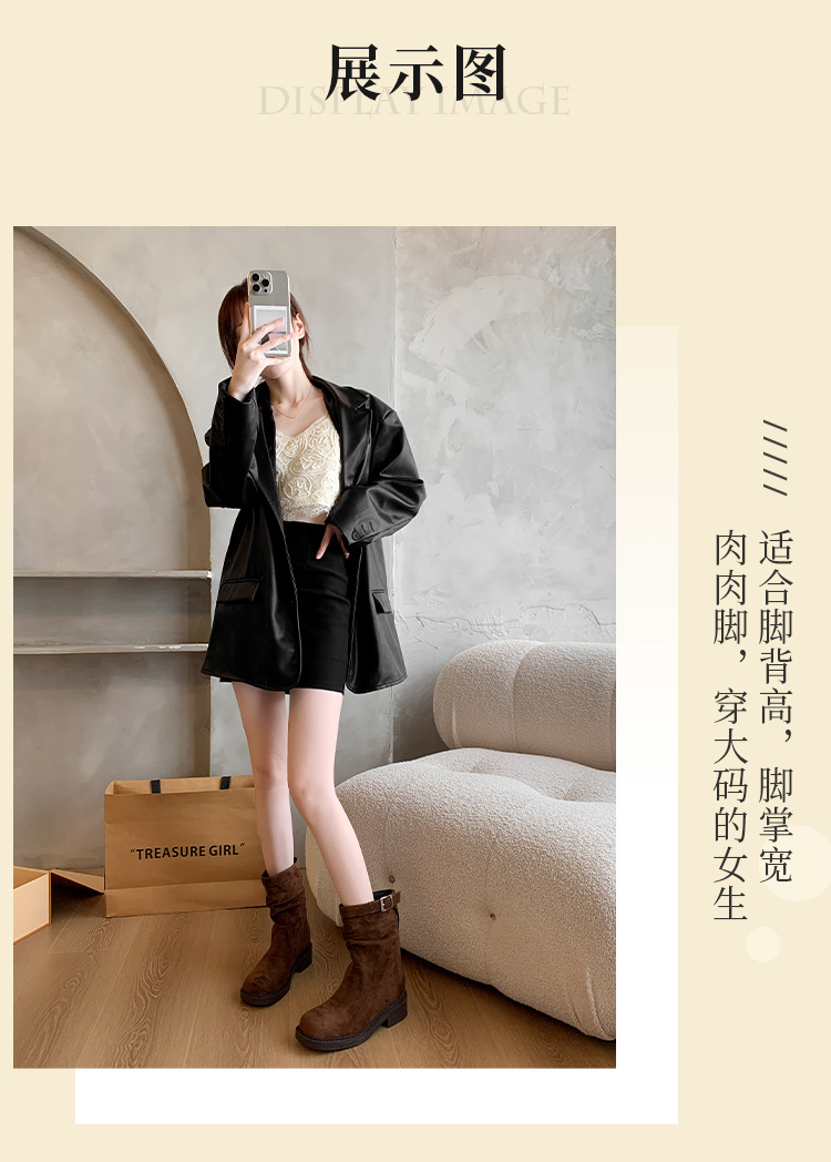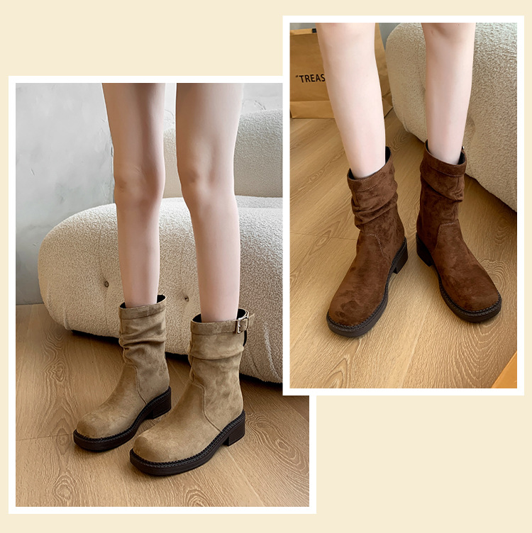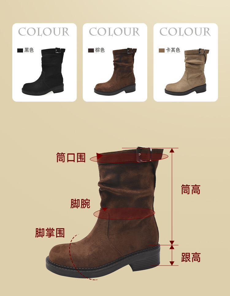 712-4 웨스턴 스타일 마틴 부츠 여성 레트로 Maillard 힙 부츠 두꺼운 다리 빅 튜브 쇼트 부츠 플러스 사이즈 40-43
