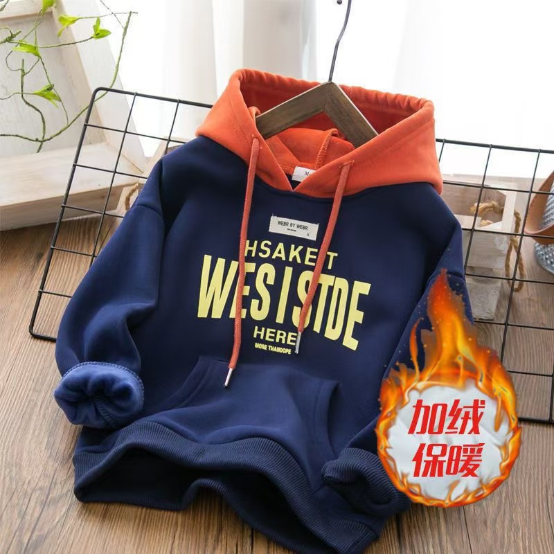 소년 기모 패딩 스웨터 2024 가을과 겨울 새로운 어린이 원피스 벨벳 따뜻한 후드베이스 셔츠 탑 조수스토어 가기