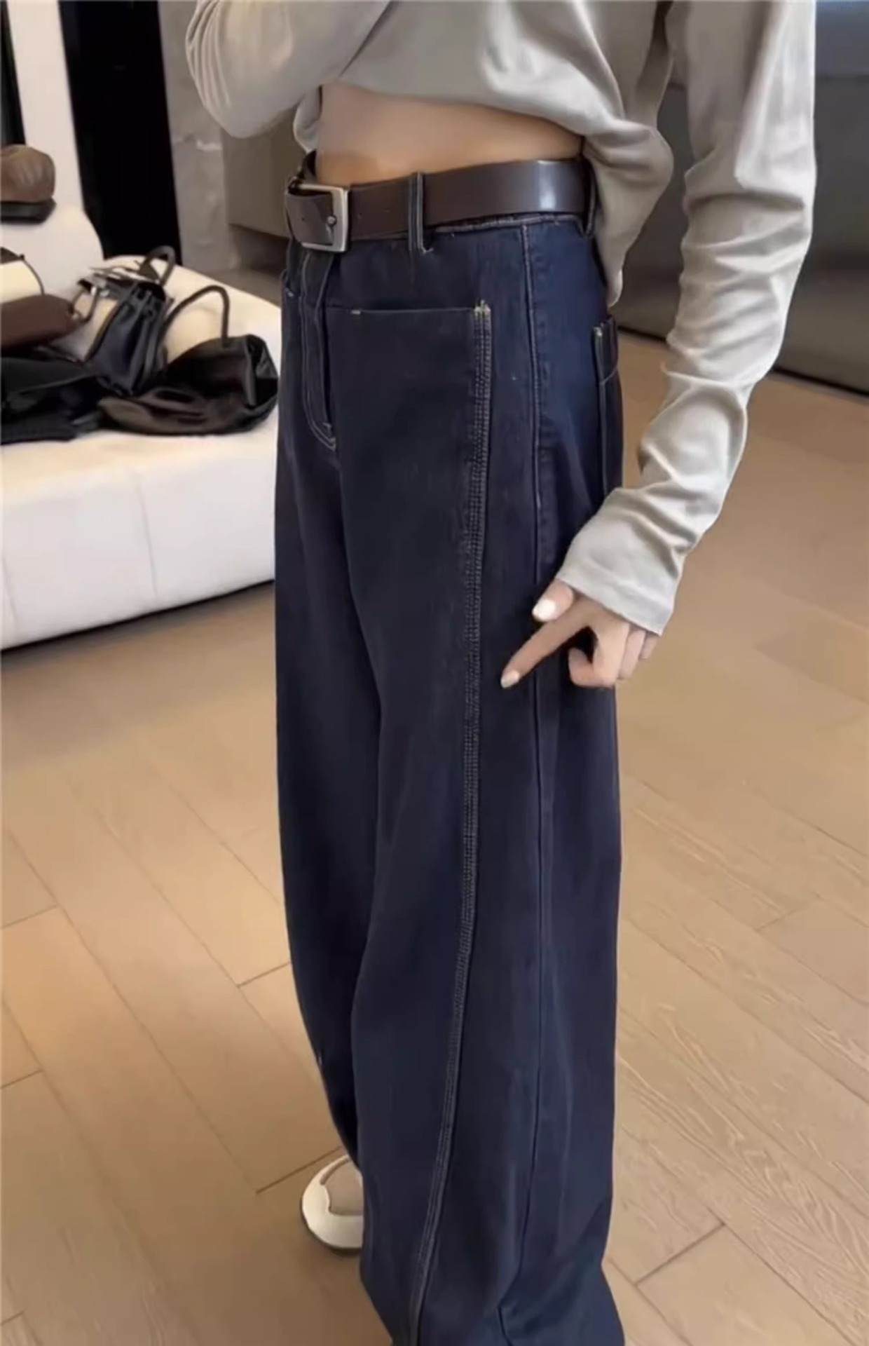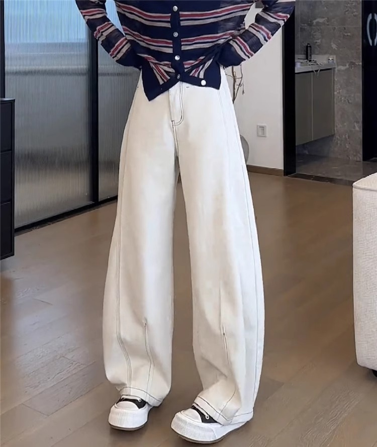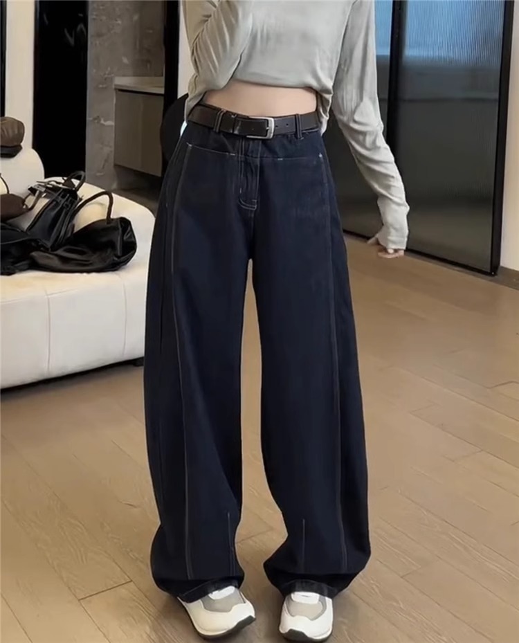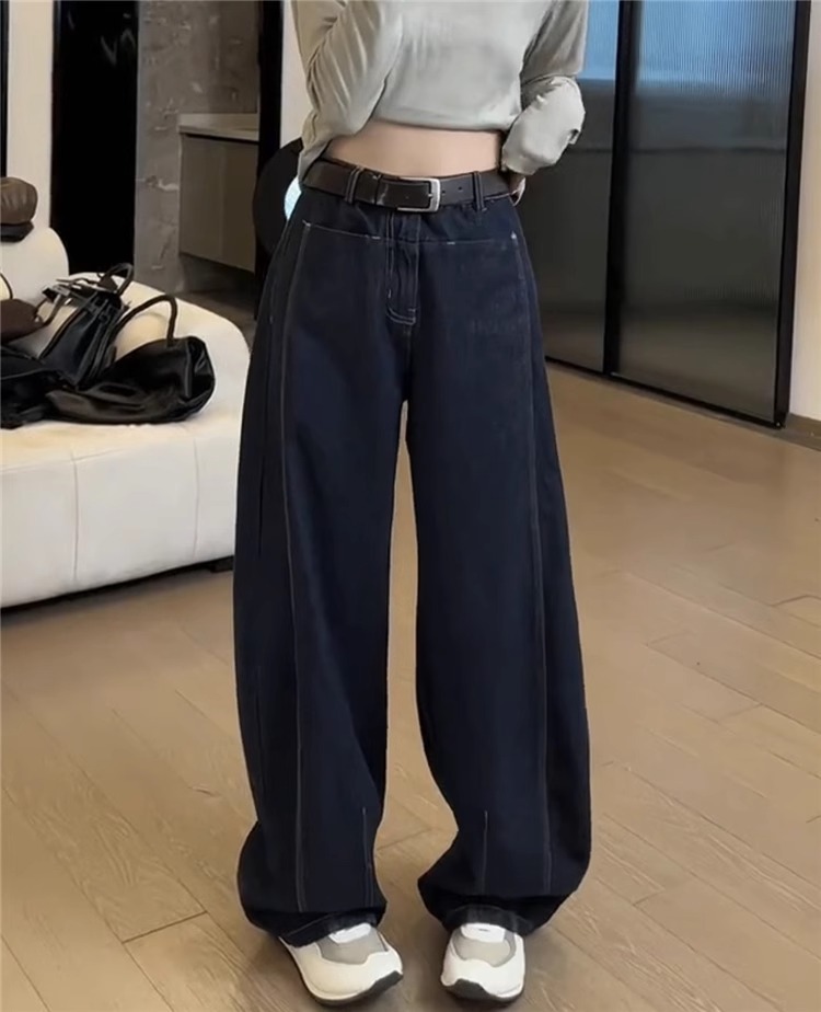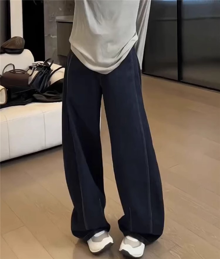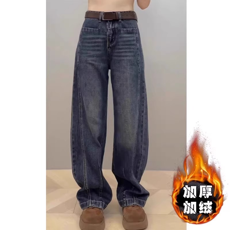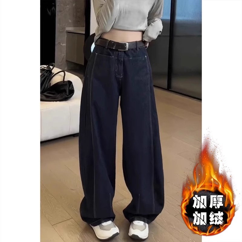 플러스 사이즈 기모 두꺼운 넓은 다리 청바지 여성의 2024 년 겨울 새 통통녀 느슨한 마체 테 바지 바나나 바지스토어 가기