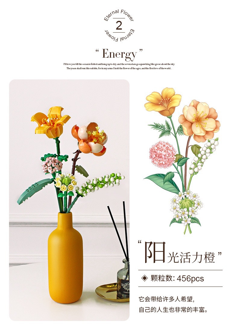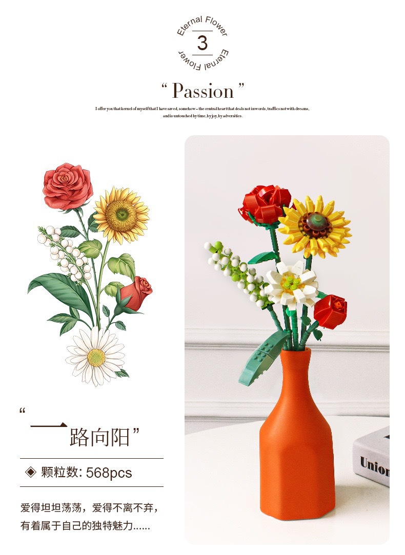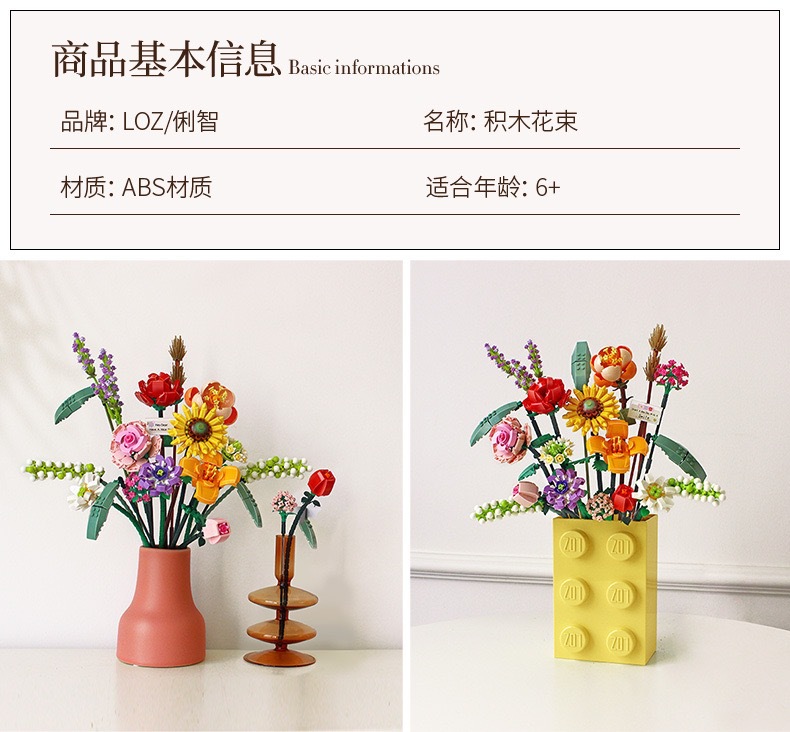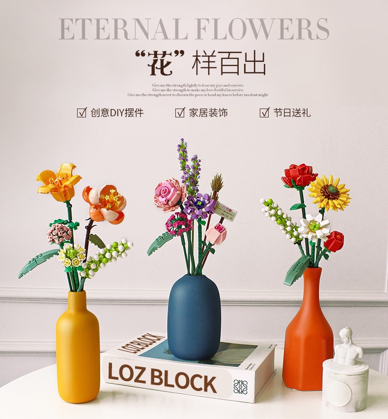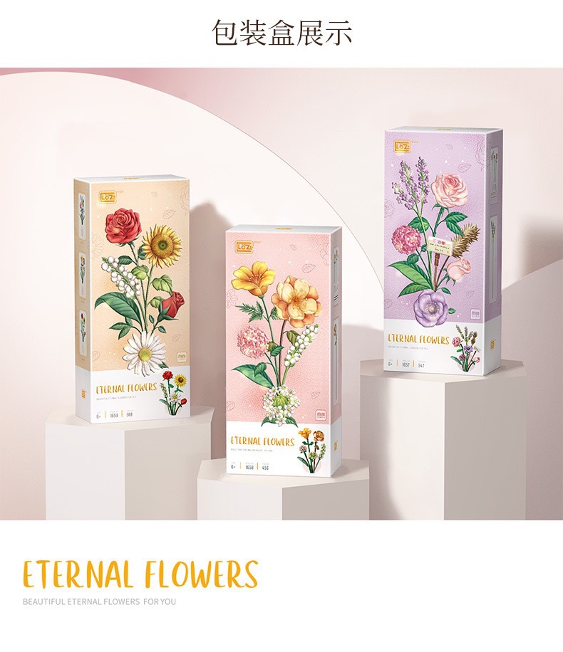 Loz 미니 과립 1657-59 불멸의 꽃 꽃다발 장식 꽃꽂이 데스크탑 장식품 소녀 선물 조립 건물 블록