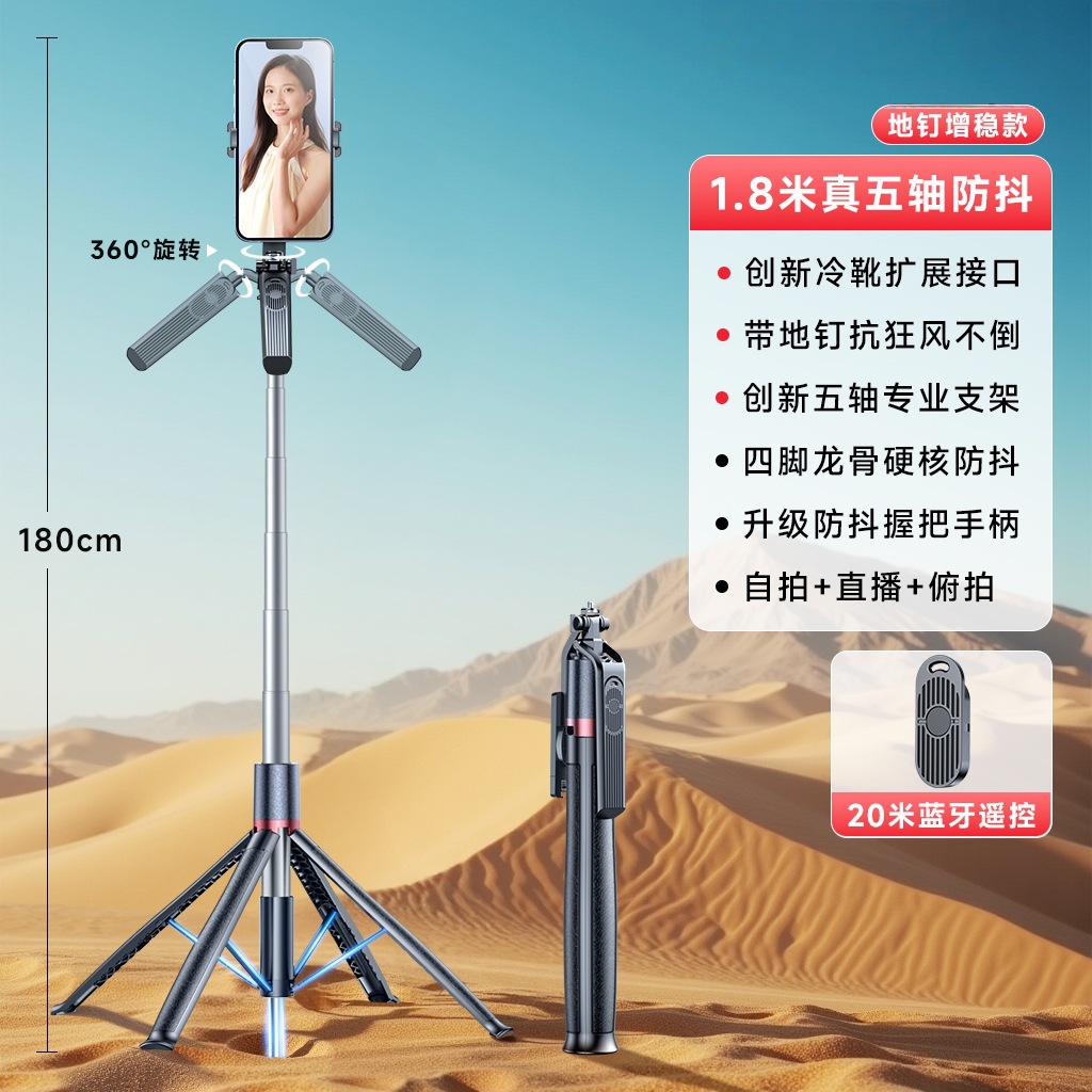 360 도 회전 다기능 핸드 헬드 셀카 스틱을 찍는 새로운 휴대 전화 셀카 스틱 유니버설 플로어 쿼드 리팟