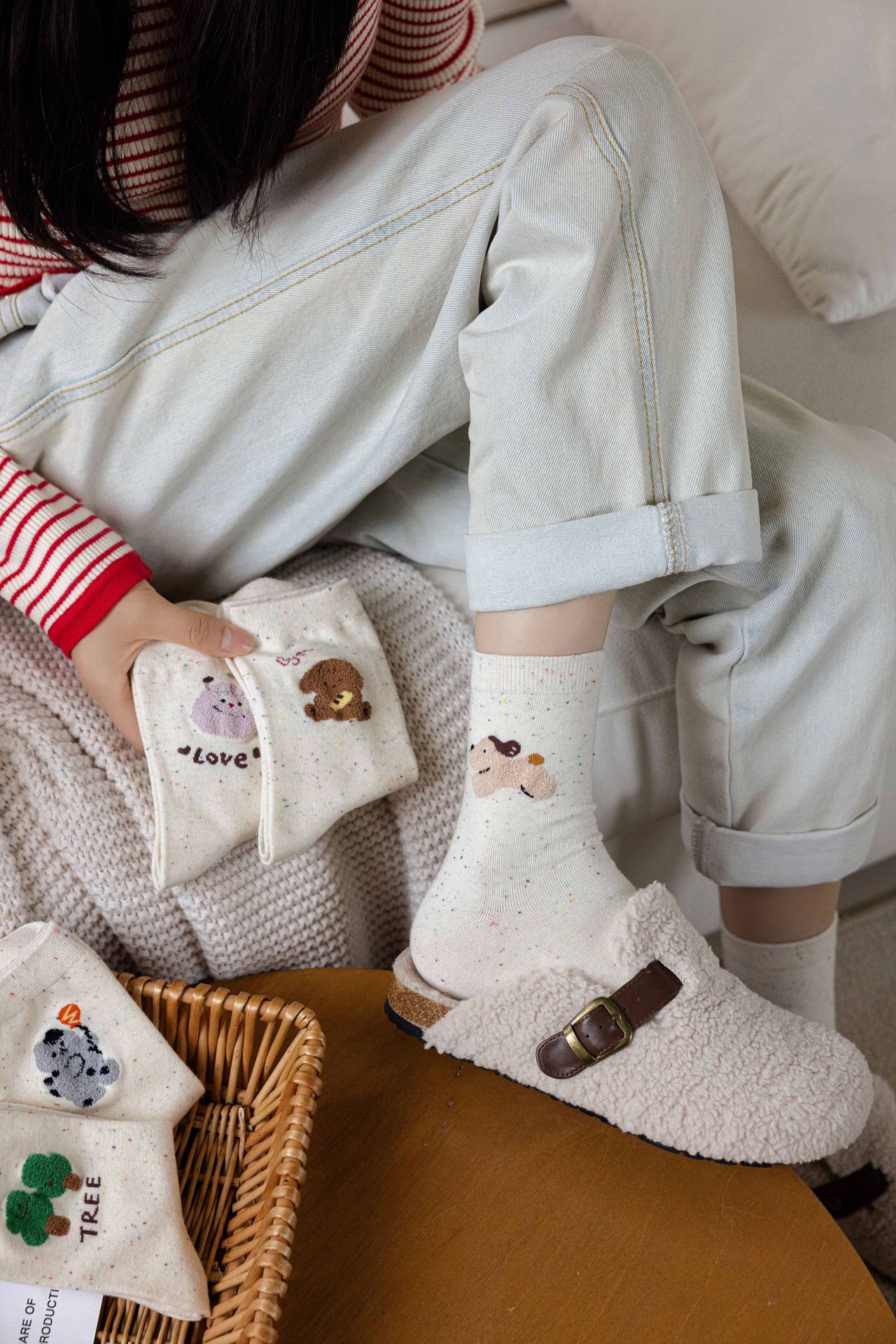 도트 원사 카르토 양말 어린이 가을과 겨울 귀여운 곰 독특한 미드 스타일 양말 Ins 트렌디 한 일본 스택 양말 캐주얼 양말스토어 가기
