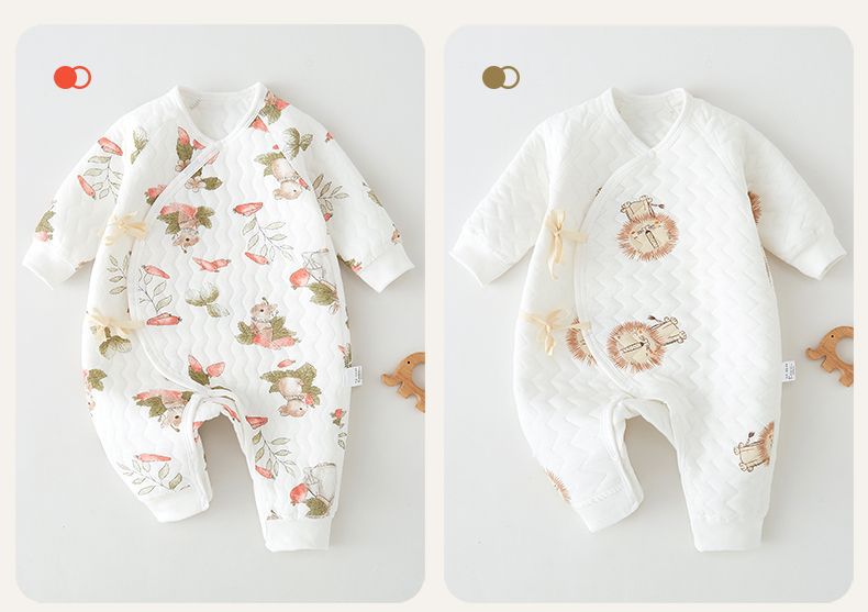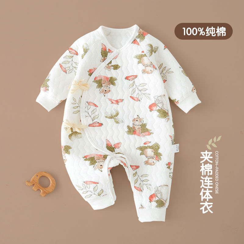 아기의 원피스 옷 봄과 가을과 겨울 면화 퀼트 따뜻한 보금 신생아 소년 소녀를위한 초가을 잠옷스토어 가기