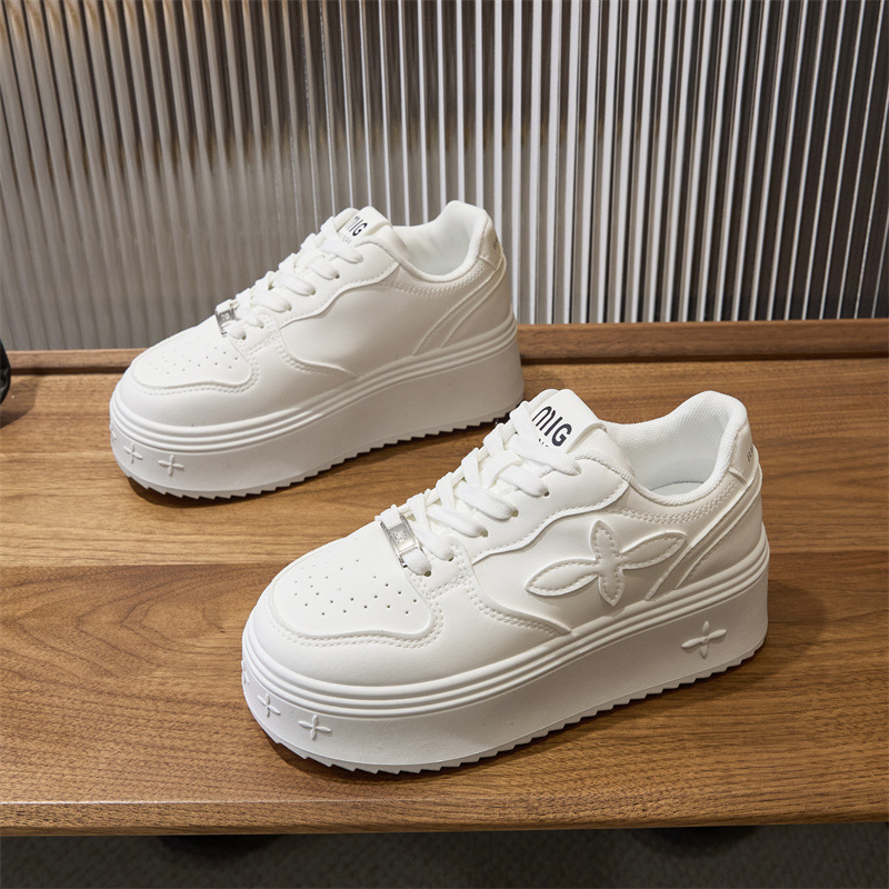 두꺼운 바닥 작은 흰색 신발 여성의 2024 새로운 올 매치 높이 증가 캐주얼 여성 신발 스커트 학생 통기성 운동화 스케이트 신발