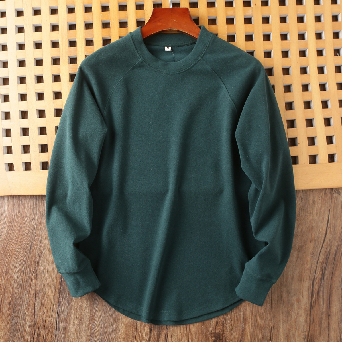 양이온 벨벳 바닥 셔츠! 가을 남자의 얇은 벨벳 샌딩 따뜻한 단색 기본 둥근 목 긴 소매 티셔츠