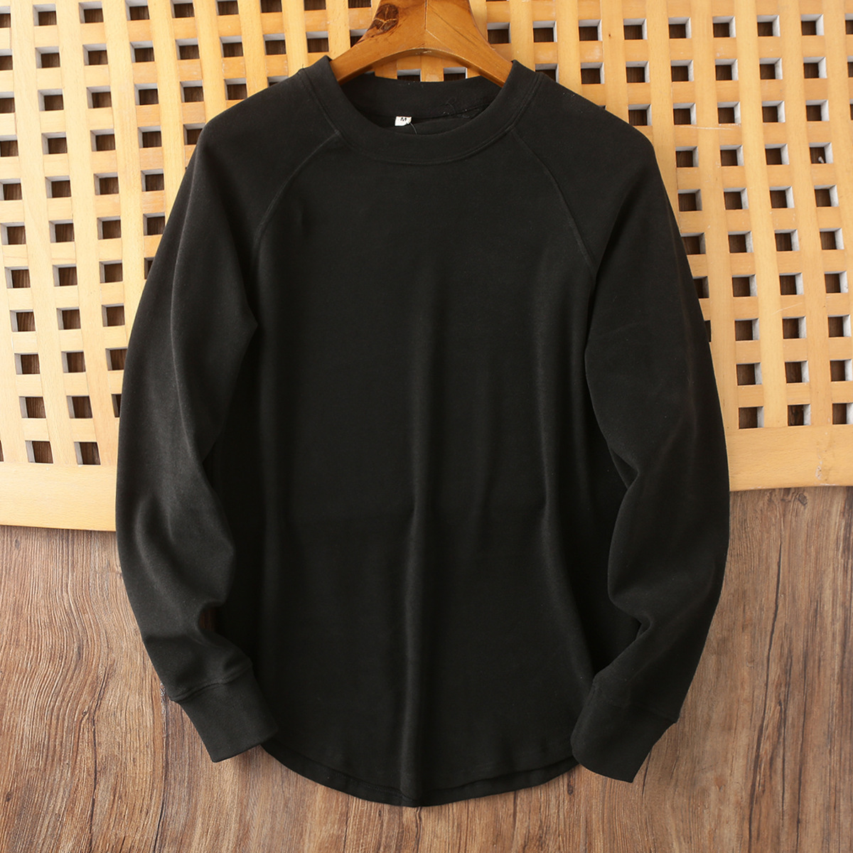양이온 벨벳 바닥 셔츠! 가을 남자의 얇은 벨벳 샌딩 따뜻한 단색 기본 둥근 목 긴 소매 티셔츠스토어 가기