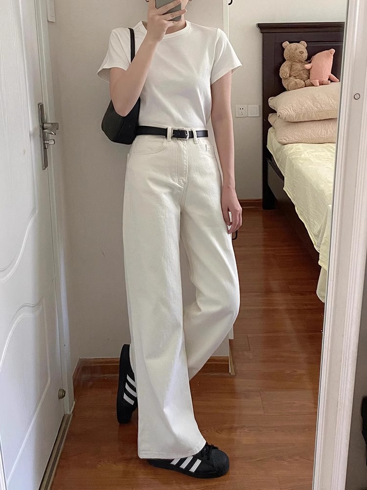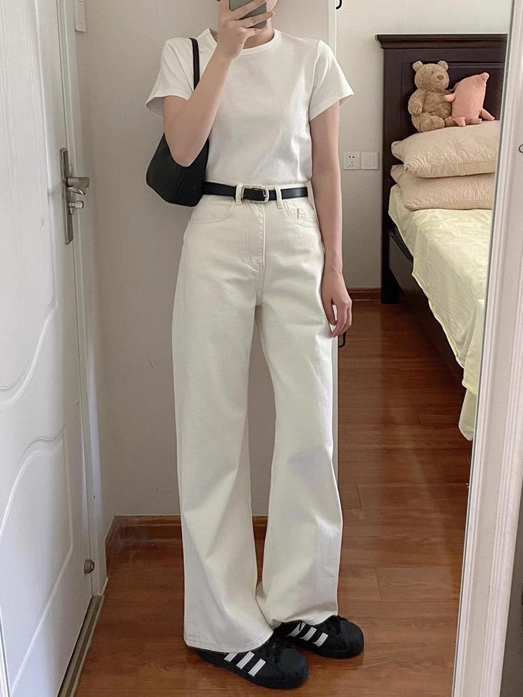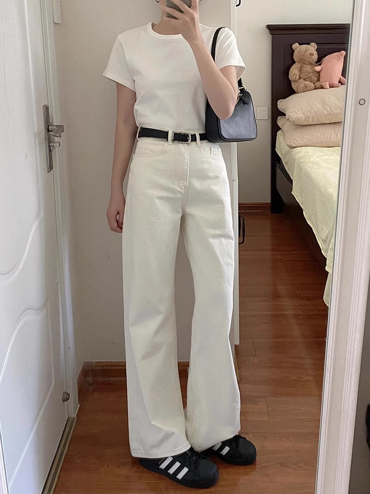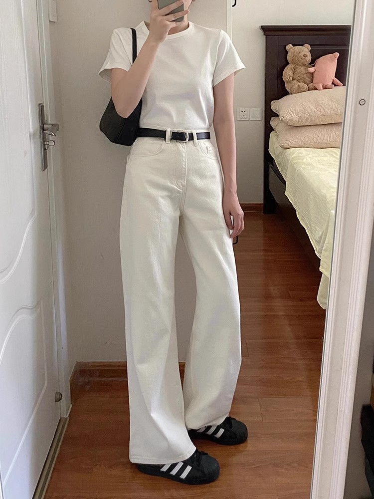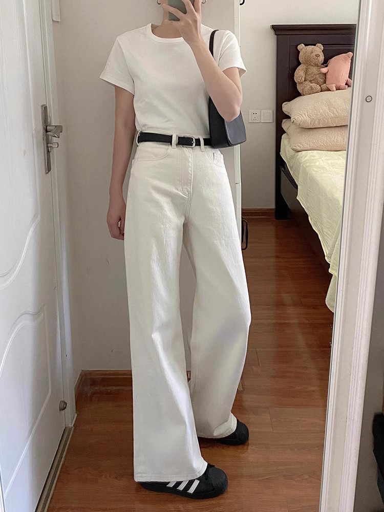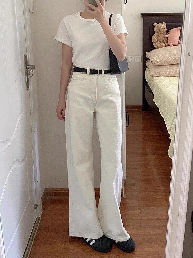 배 모양의 흰색 드롭 청바지 여성의 가을 새 플러스 사이즈 통통녀 슬리밍 느슨한 높은 허리 넓은 다리 바지스토어 가기