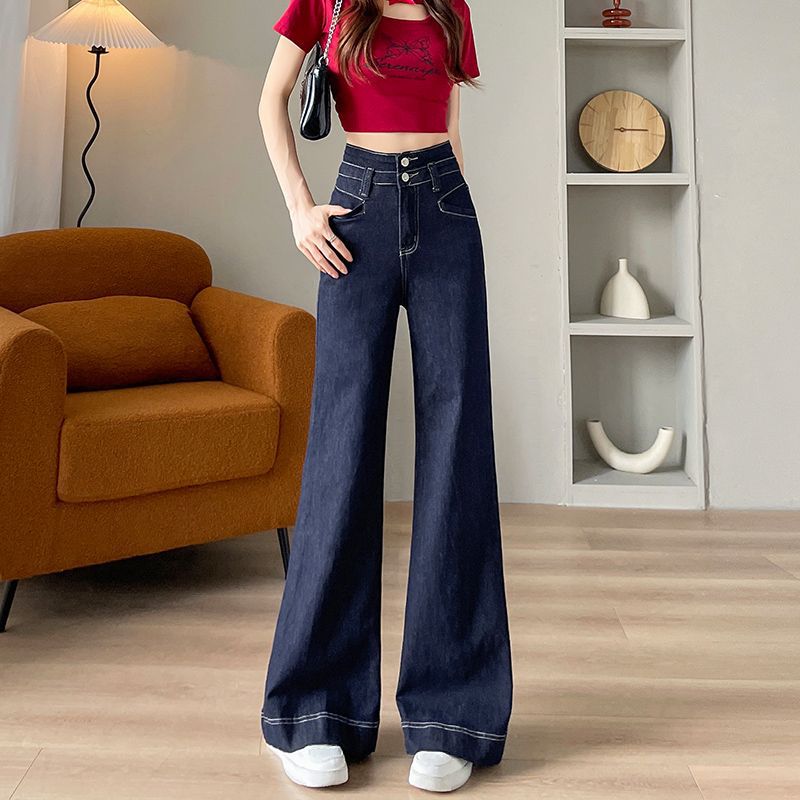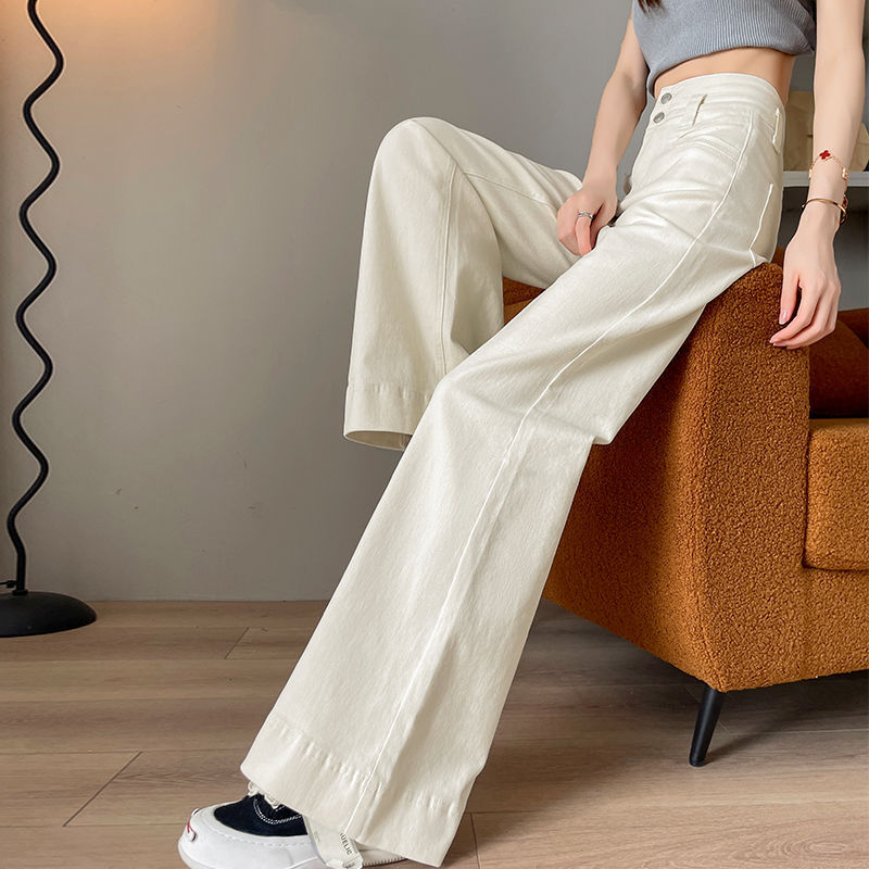 아이보리 와이드 레그 청바지 여성용 느슨한 바지는 2024 년 가을을위한 다리 길이 올 매치 새로운 딥 팬츠를 보여줍니다스토어 가기