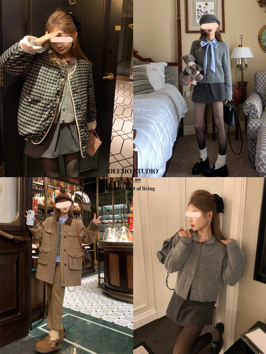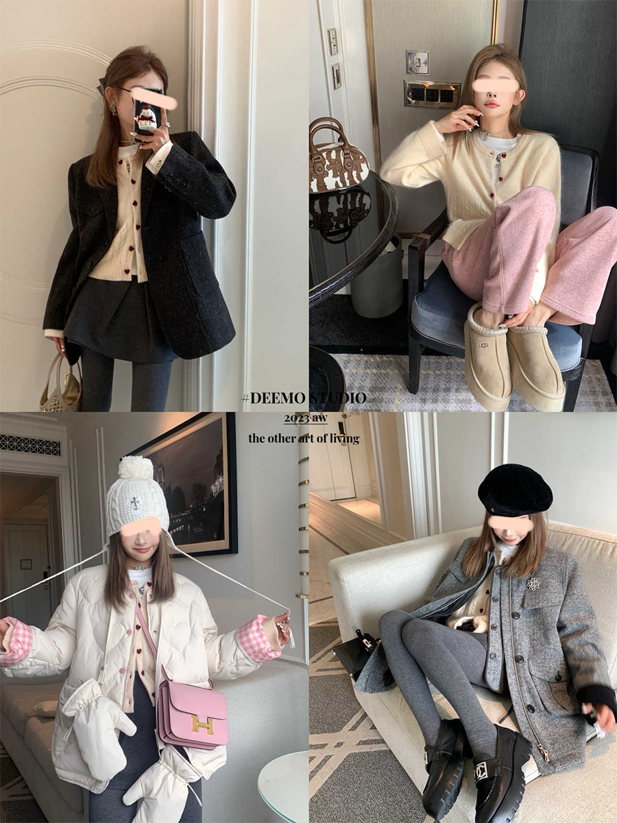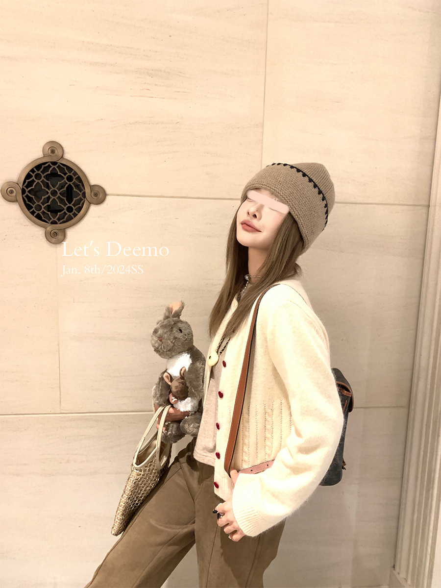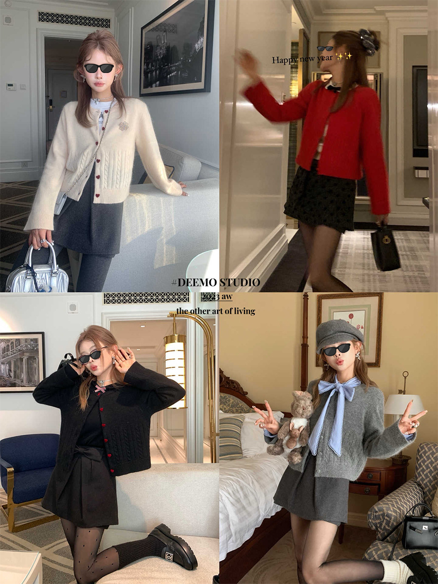 DEEMO [Sweetheart Women's Group] 부드러운 글루틴 모조 토끼 머리/모조 양모 니트 카디건 스웨터 여자 겨울 탑스토어 가기