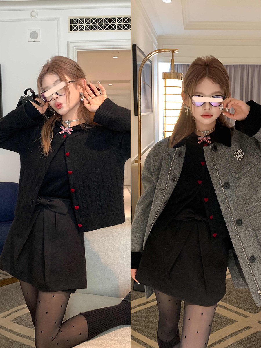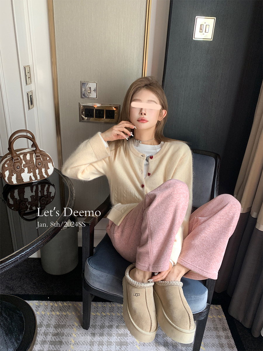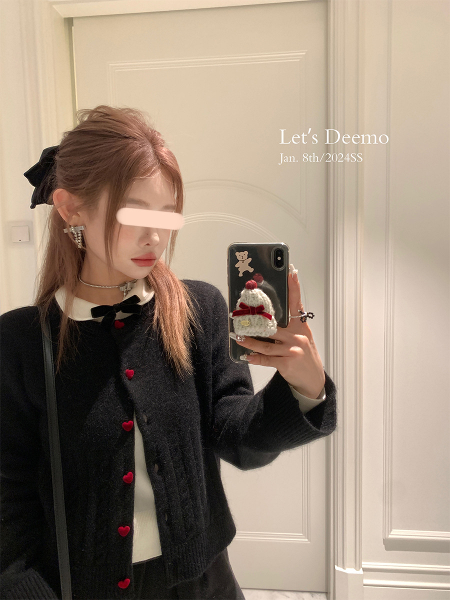DEEMO [Sweetheart Women's Group] 부드러운 글루틴 모조 토끼 머리/모조 양모 니트 카디건 스웨터 여자 겨울 탑