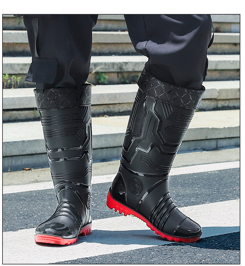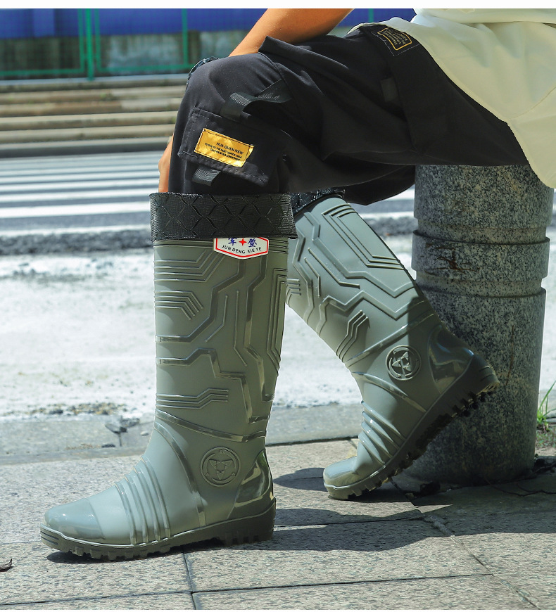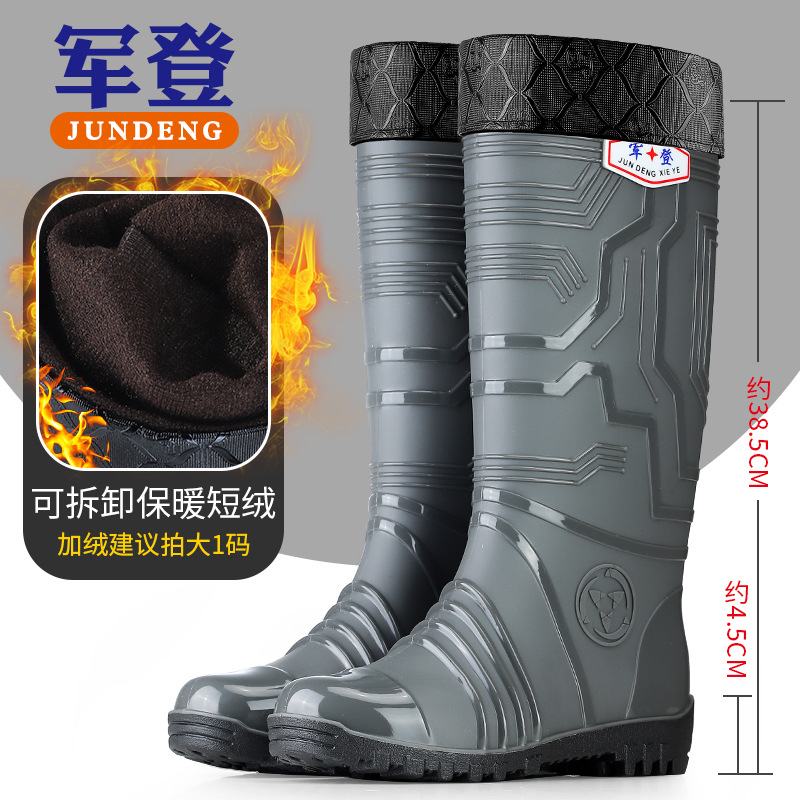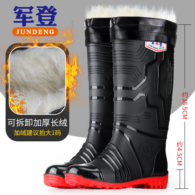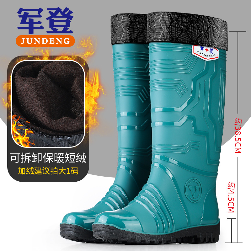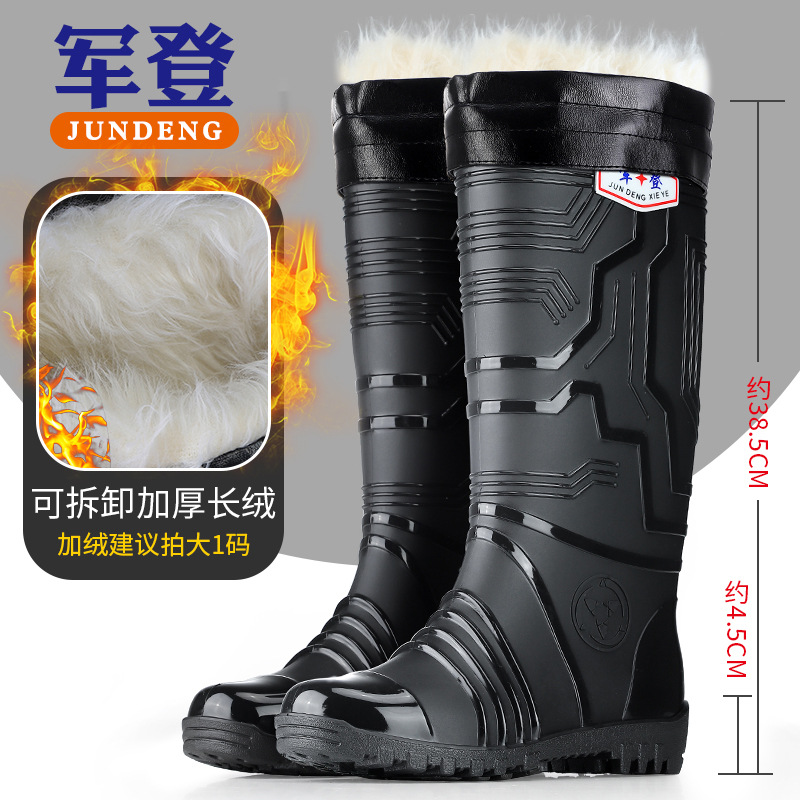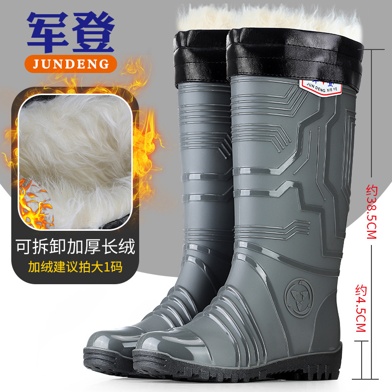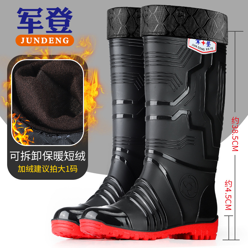 국경 간 트렌드 새로운 장화 남성용 높은 방수 신발 기모 미끄럼 방지 커플 고무 신발 장화 오버 슈즈