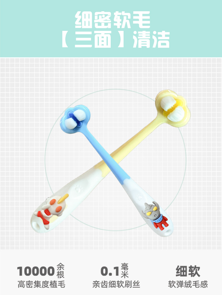 Altman 어린이 귀여운 만화 부드러운 머리 3-6 세-12 세 아기 치아 칫솔 3 면 칫솔 남학생