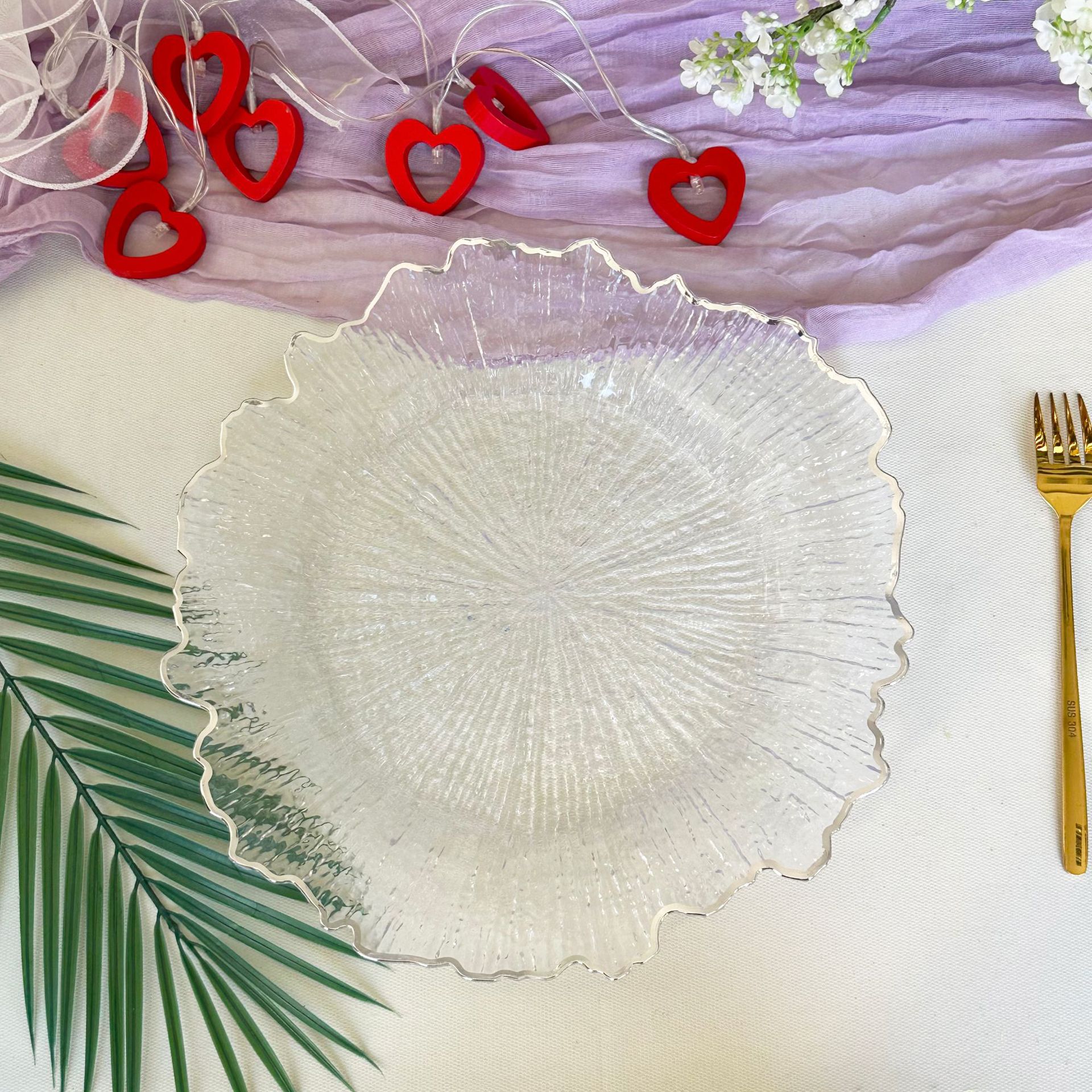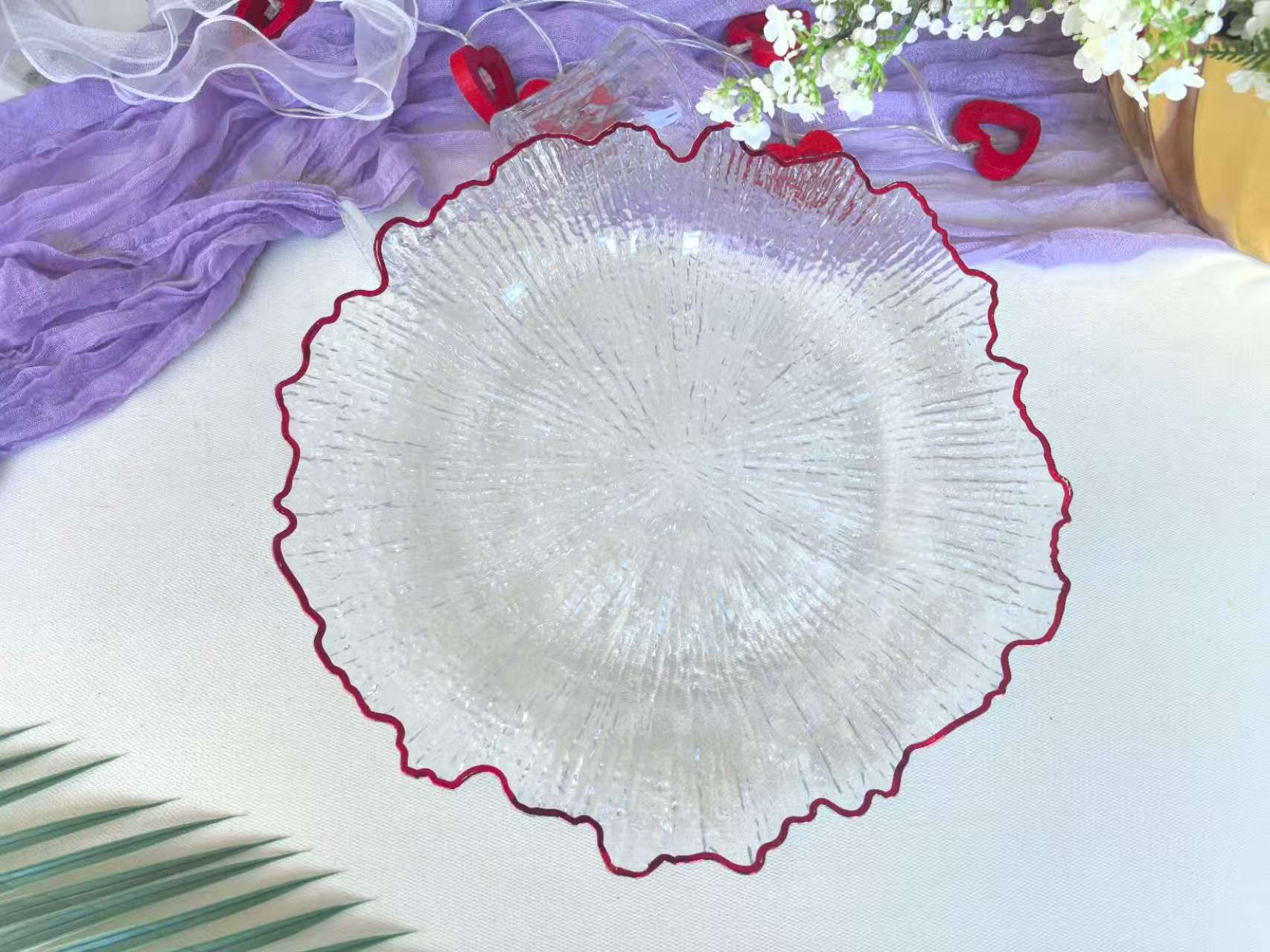 투명한 프놈펜 대외 무역 충전기 플레이트 로터스 플레이트 웨딩 호텔 파티 장식 플레이트 라이트 럭셔리 과일 플레이트