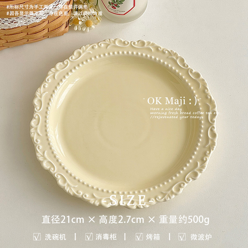 프랑스 복고풍 밀짚 모자 접시, 고급 가벼운 럭셔리 디너 접시, 가정용 세라믹 접시, 크림 스타일 케이크 디저트 접시스토어 가기