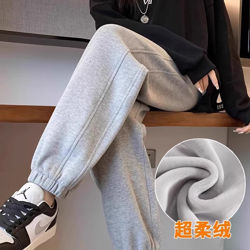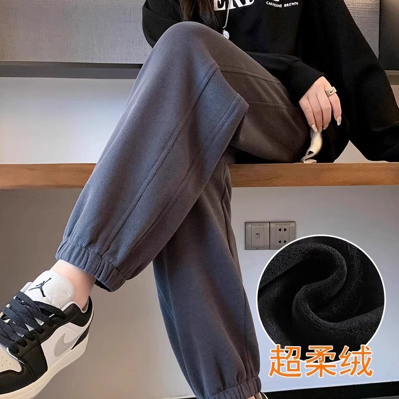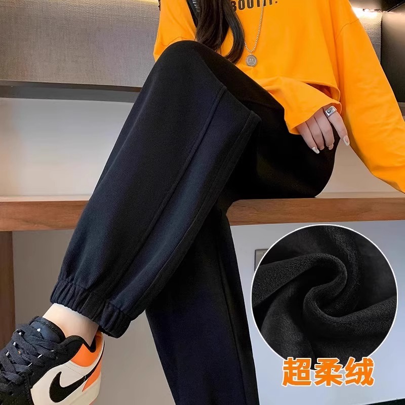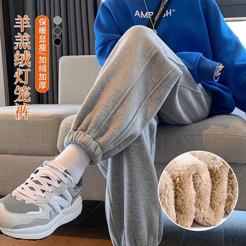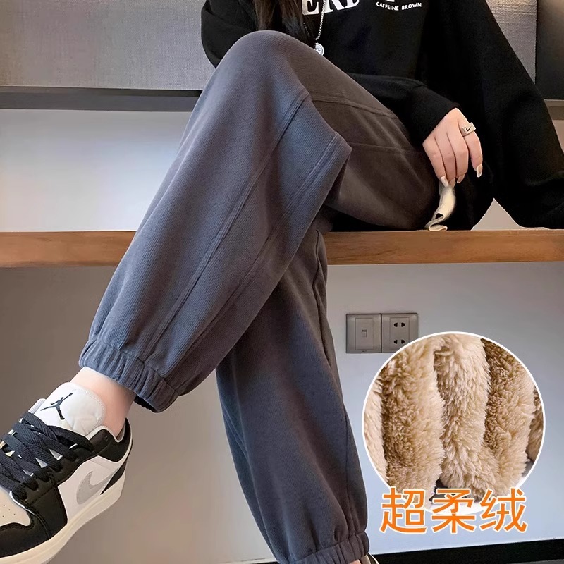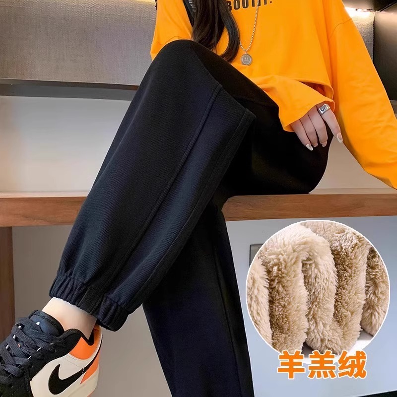 플러스 사이즈 기모 두꺼운 양고기 양털 여성용 스포츠 바지 겨울 번들 다리 캐주얼 방풍 바지 웨이 바지 가을 및 겨울 면화 바지