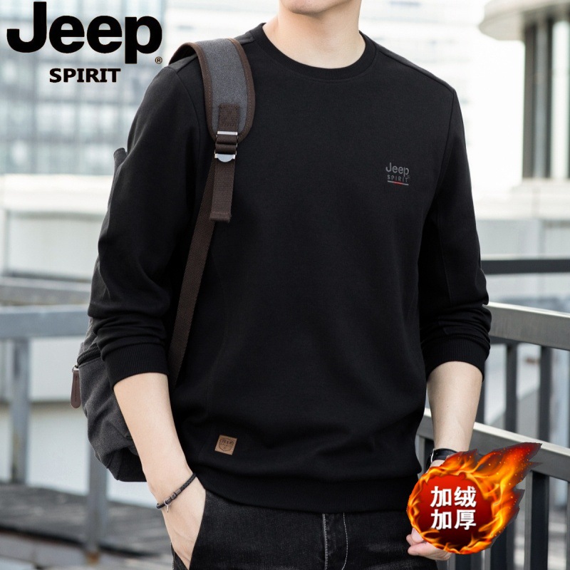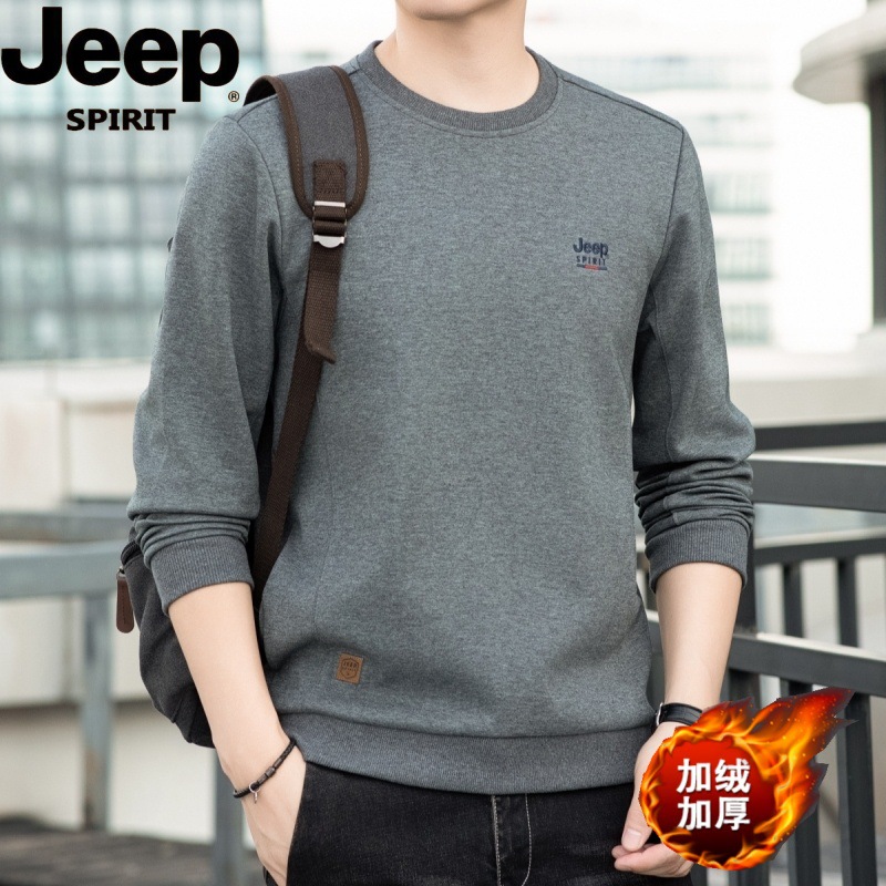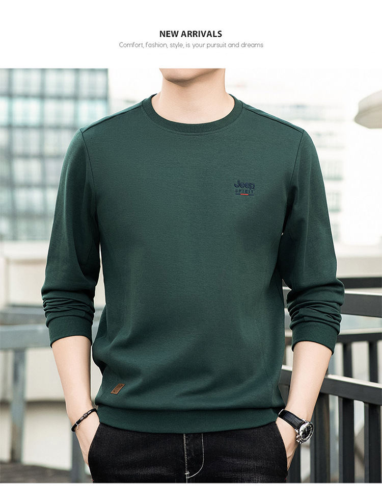 JP2024 가을과 겨울 새로운 남자의 단색 기모 둥근 목 느슨한 유행 긴 소매 티셔츠 남자 TS305406스토어 가기