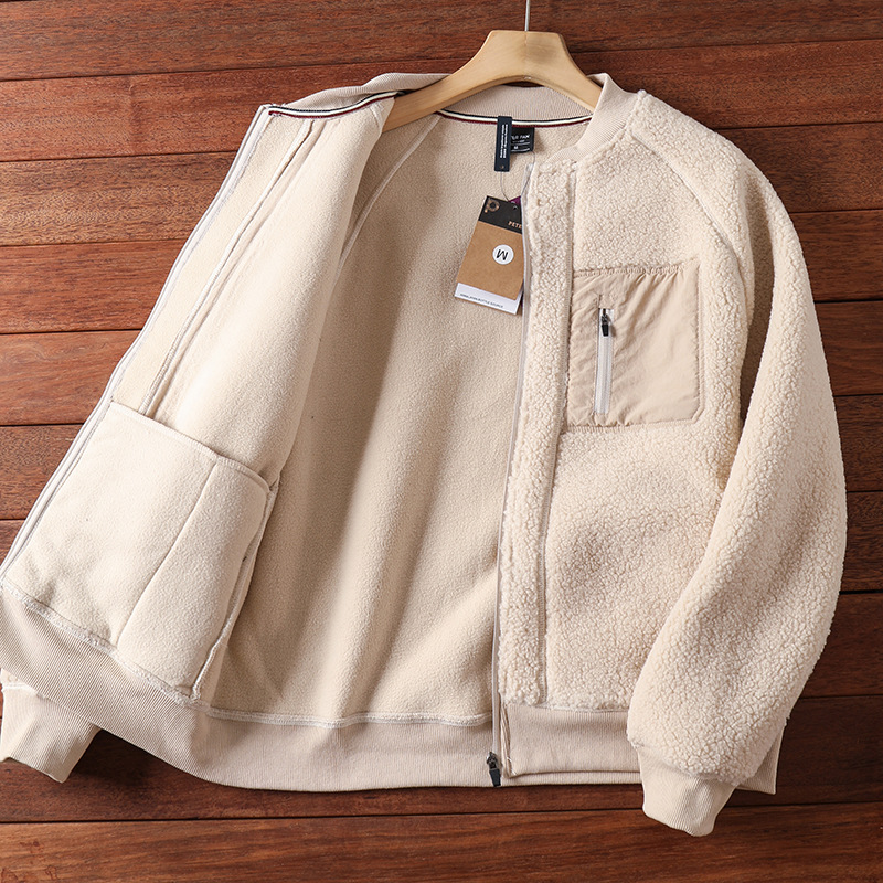 面料外面羊羔毛里面摇粒绒外形简约大气 款式潮流前卫