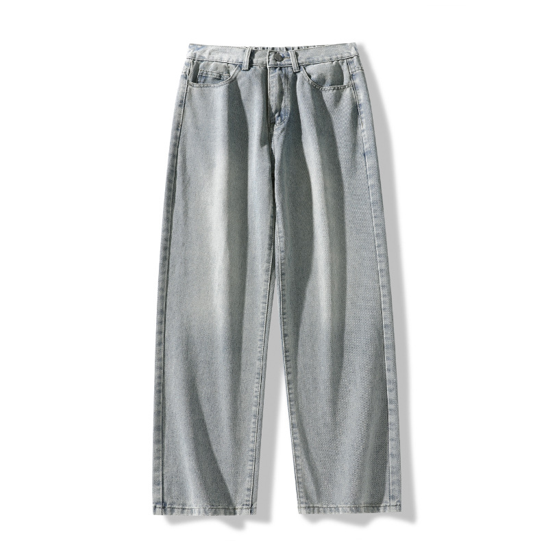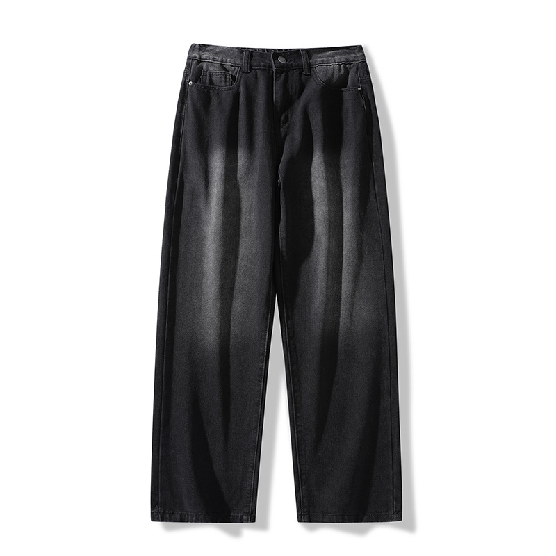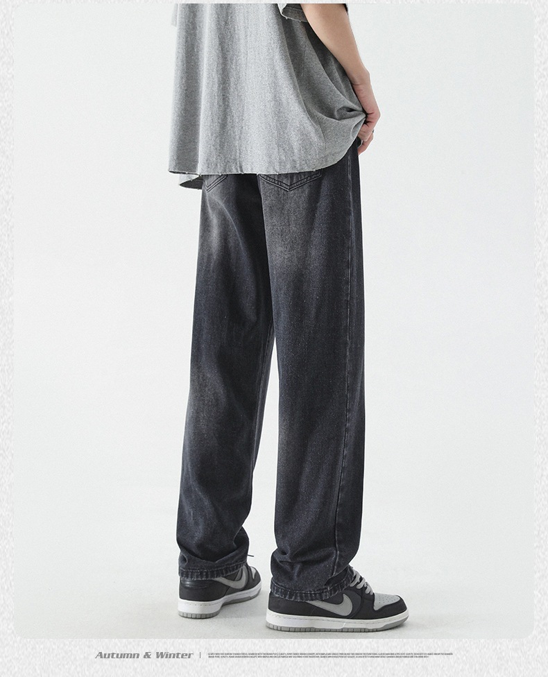 무추 남성복∣후리스 안감 두꺼운 보온성 아메리칸 스타일 데님 팬츠 남성용 루즈핏 레트로 워싱 와이드 팬츠 만능 코디 바지스토어 가기
