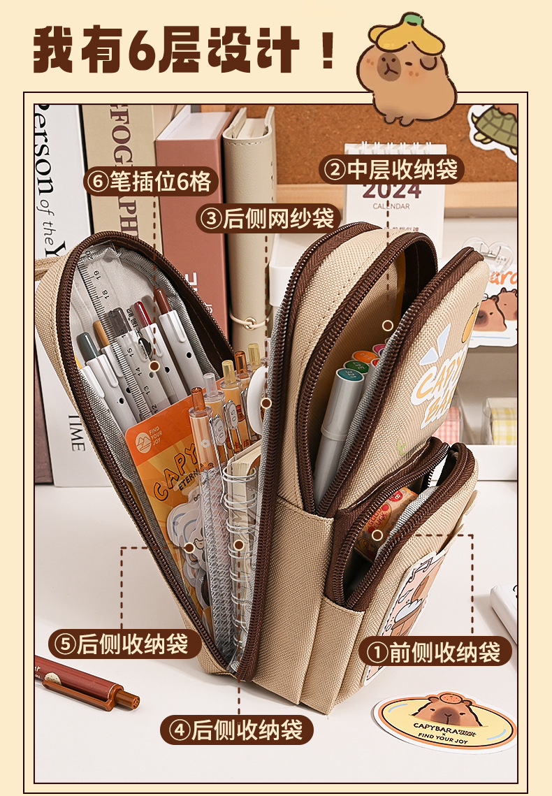 Kapibala 학교 가방 연필 가방 고급 문구 가방 대용량 및 먼지 방지 2025 새로운 다층 연필 가방 도매스토어 가기