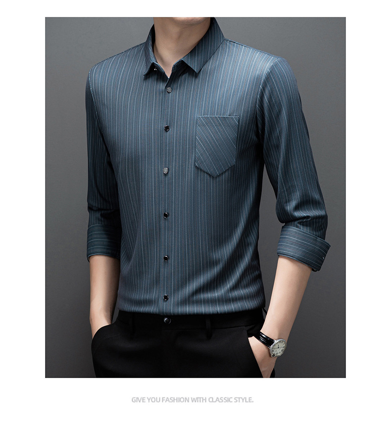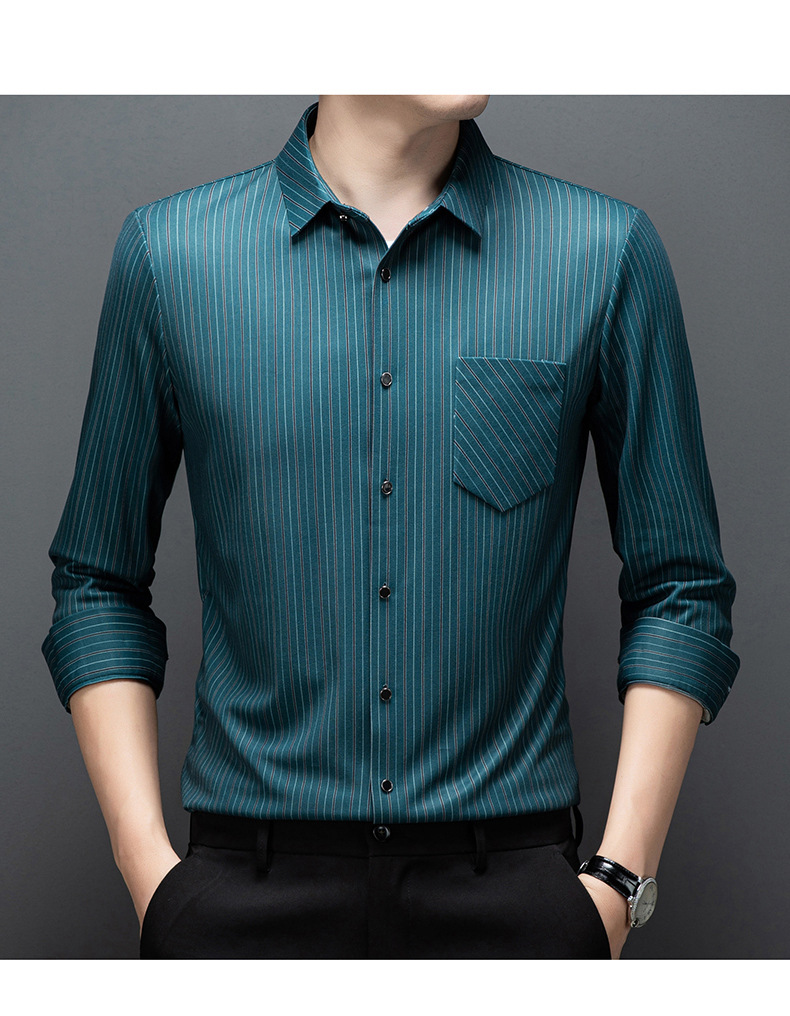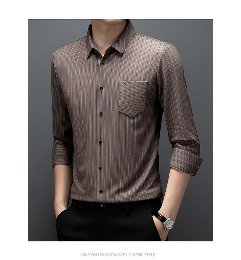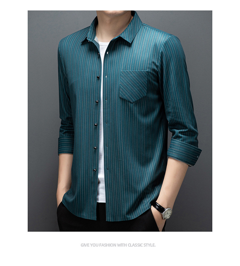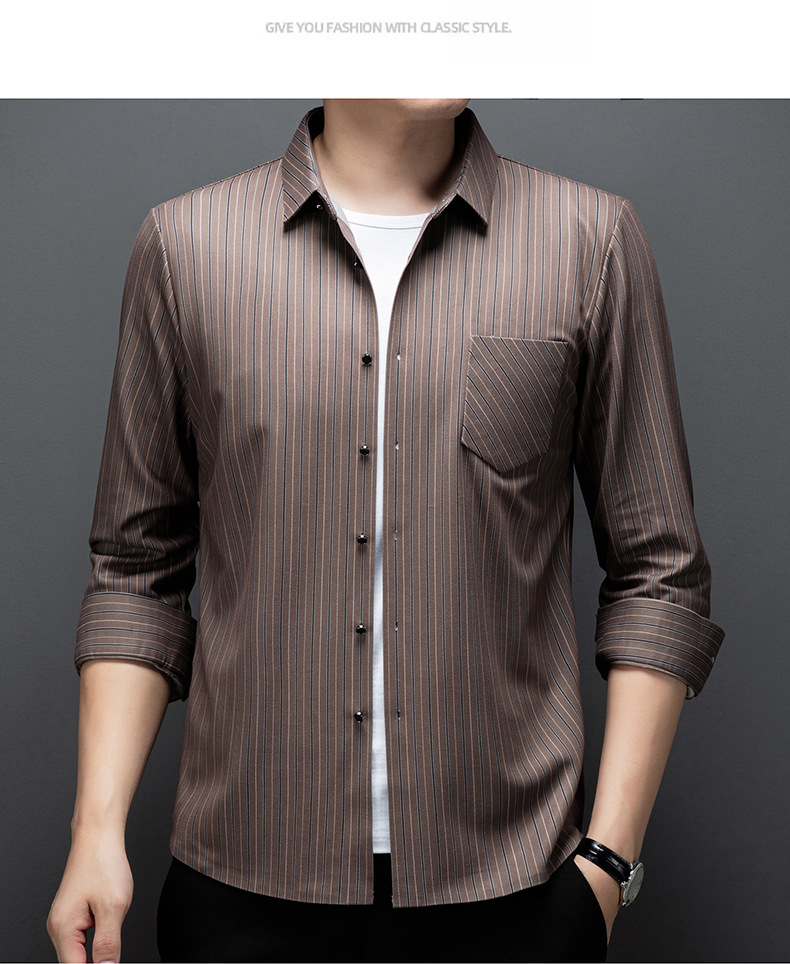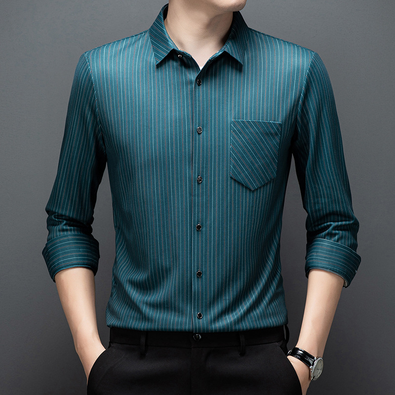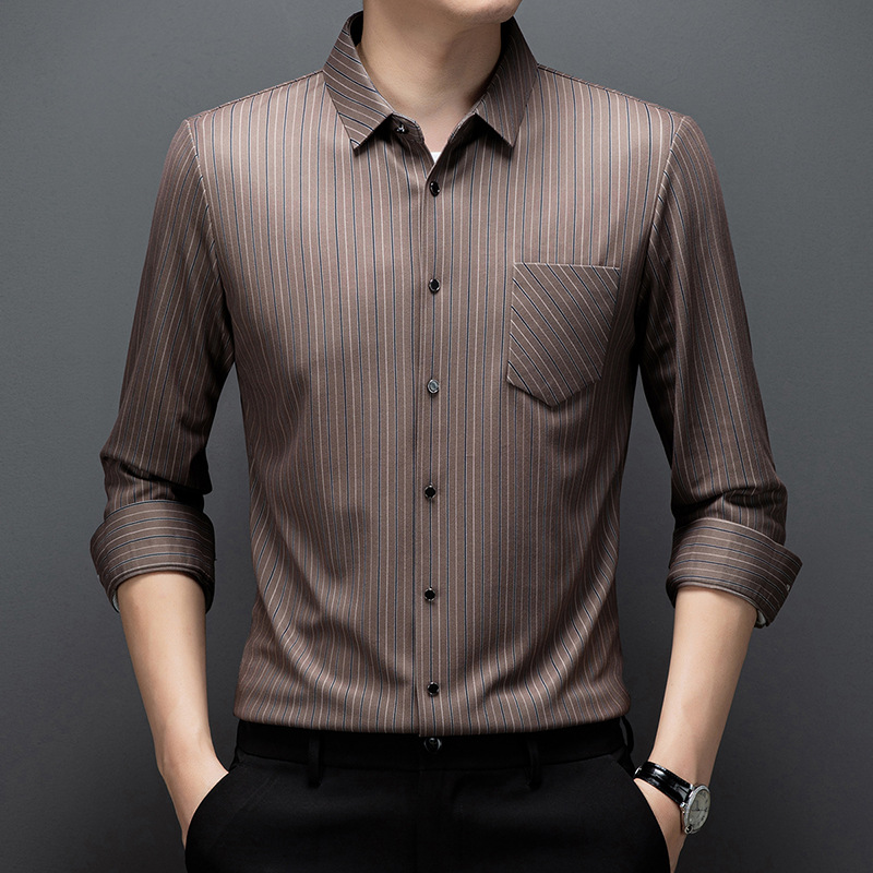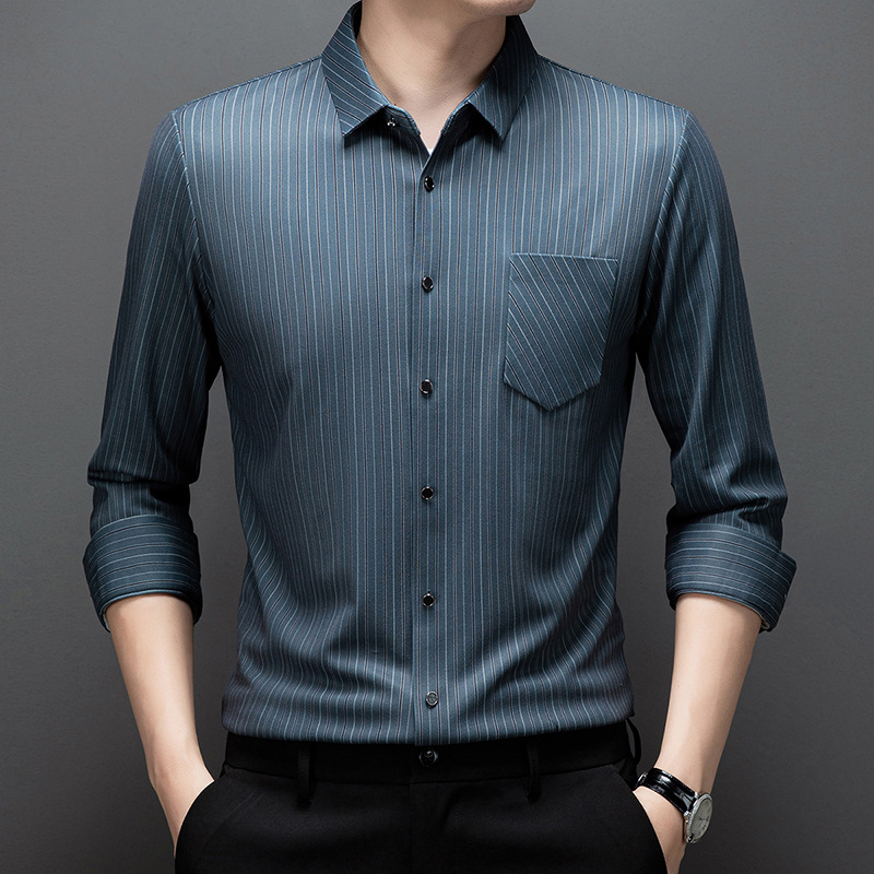 국경 간 대외 무역 긴팔 셔츠 남자의 봄과 가을 추적없는 줄무늬 셔츠 간단한 캐주얼 올 매치 리얼 포켓 셔츠