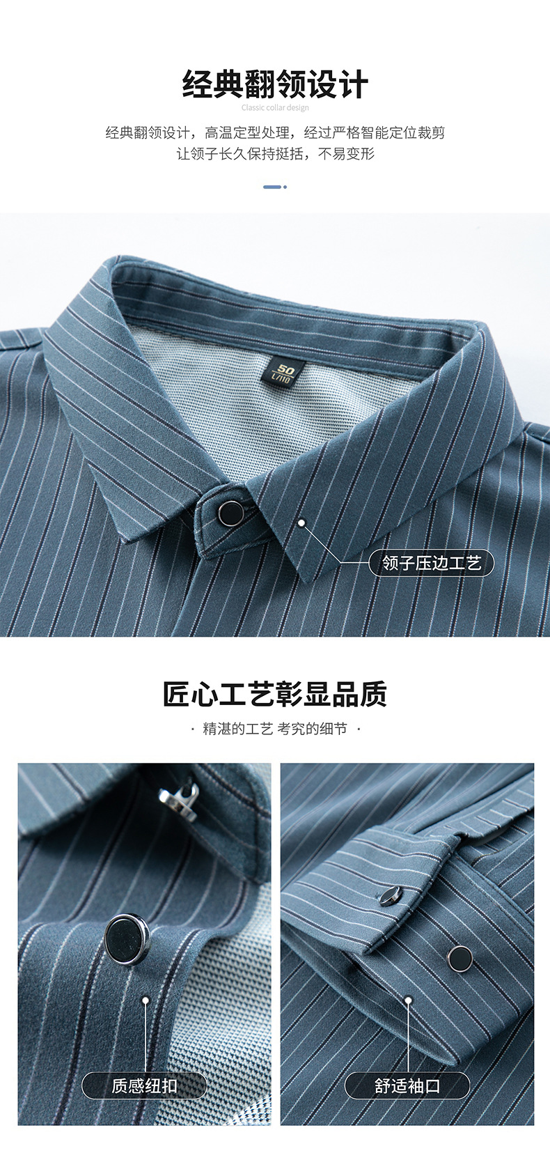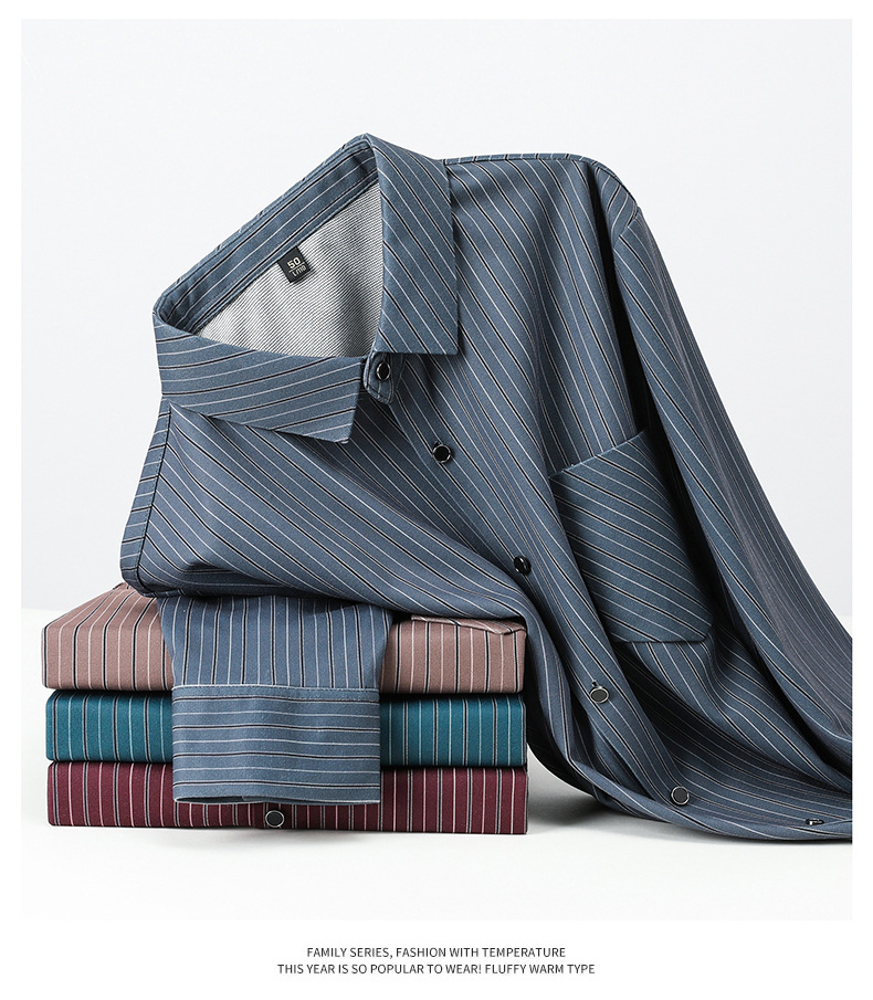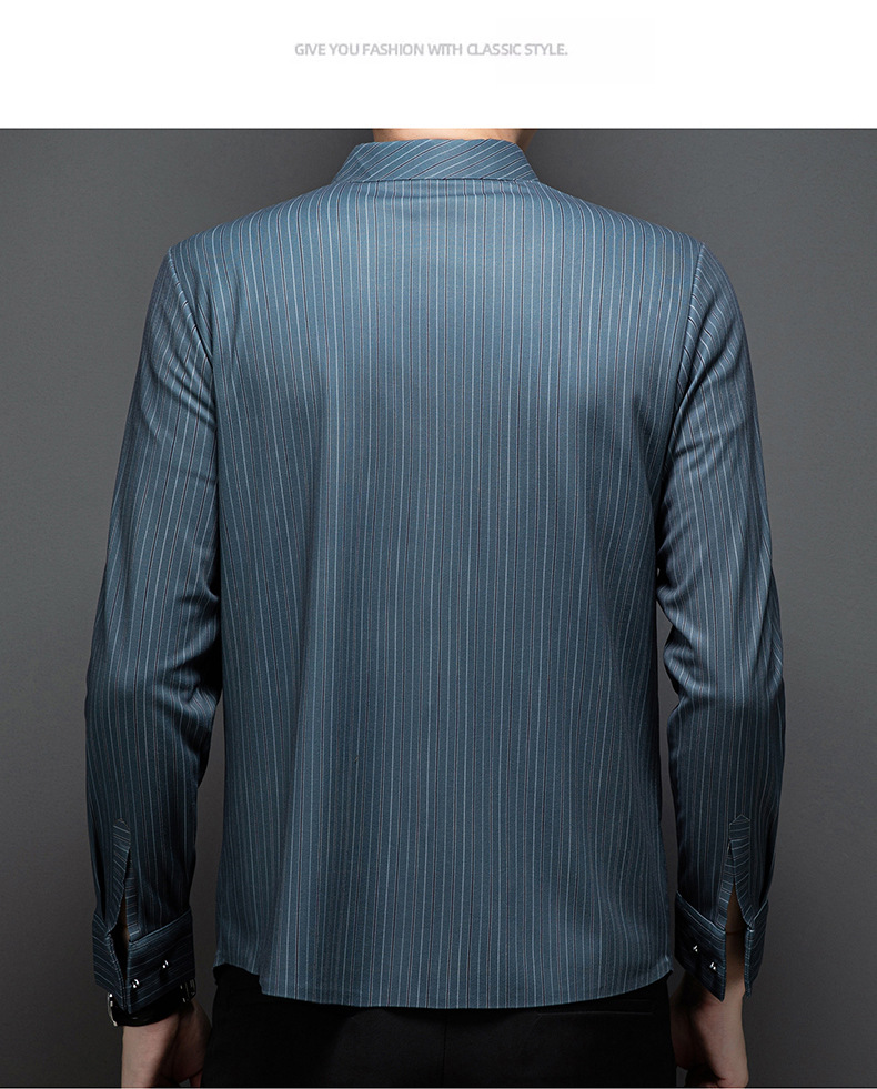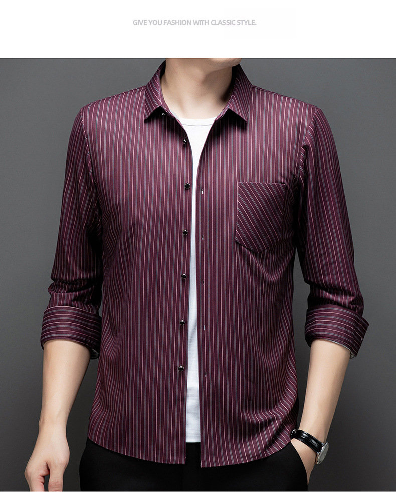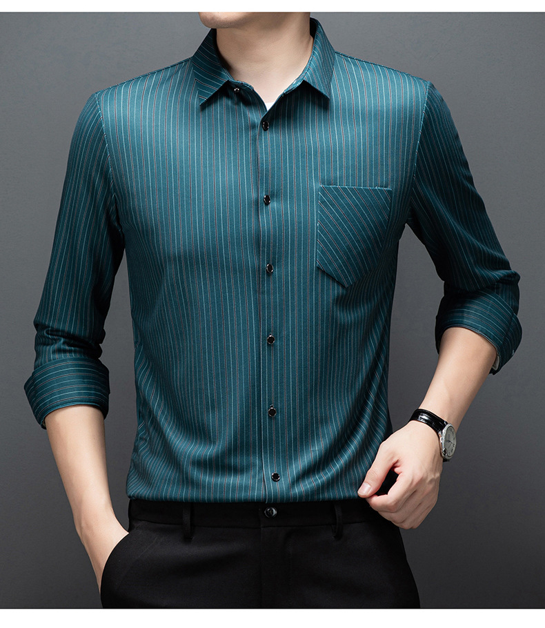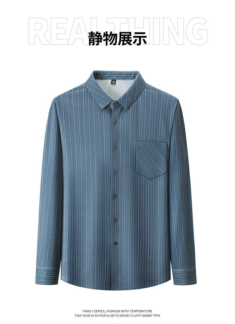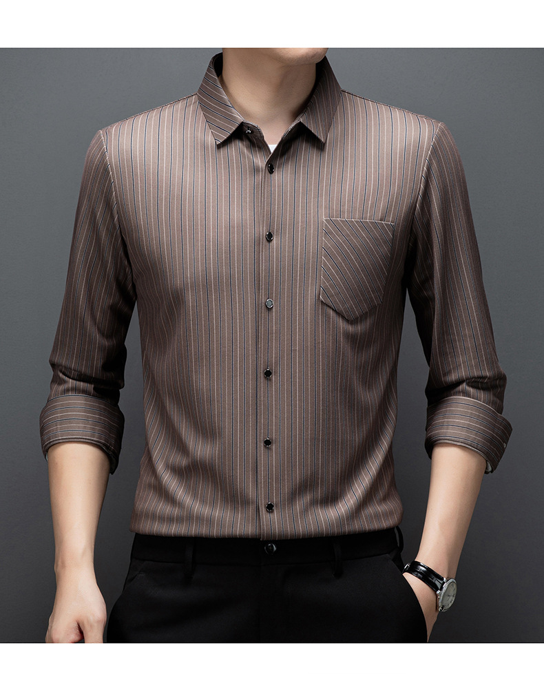 국경 간 대외 무역 긴팔 셔츠 남자의 봄과 가을 추적없는 줄무늬 셔츠 간단한 캐주얼 올 매치 리얼 포켓 셔츠