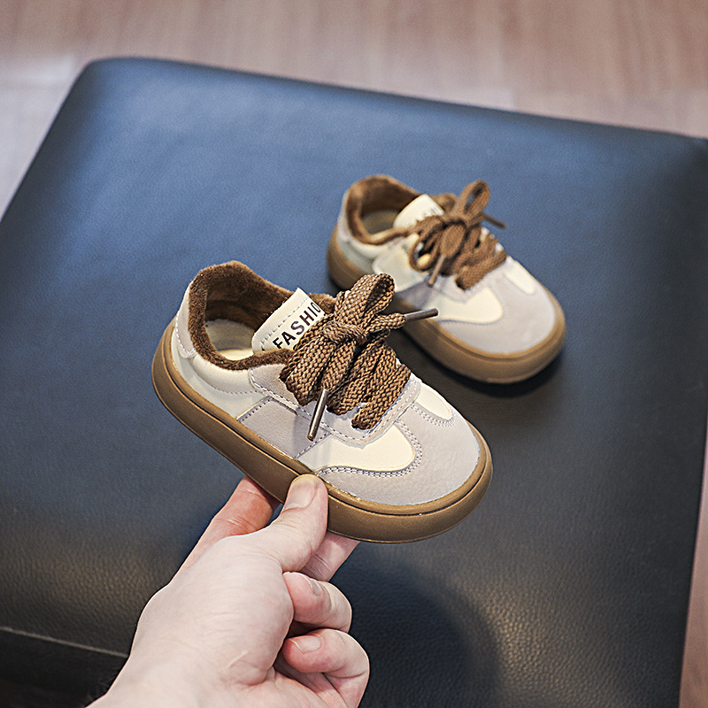 가을과 겨울 새로운 아기 유아 신발 소년 편안한 스포츠 캐주얼 신발 한국 스타일 소녀 기모 소프트 솔 보드 신발