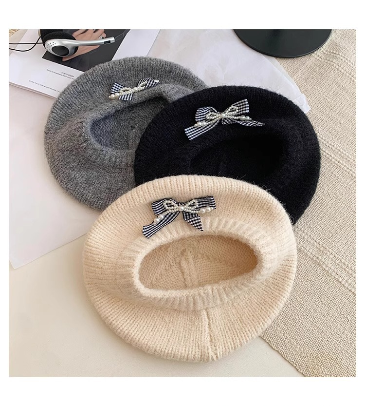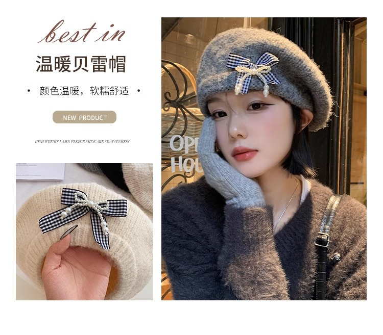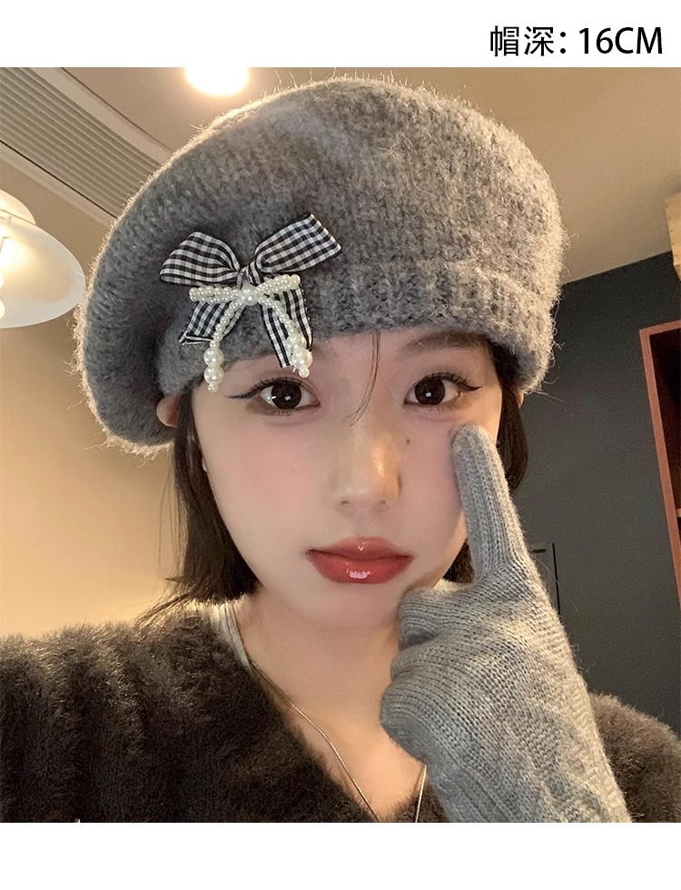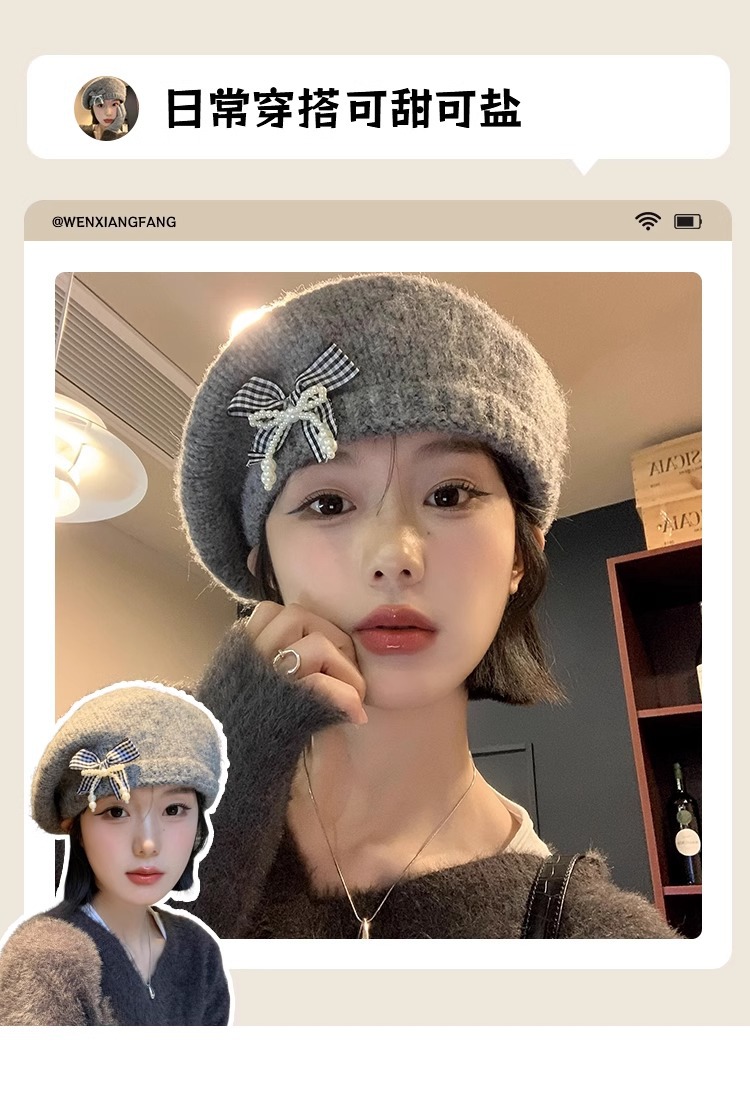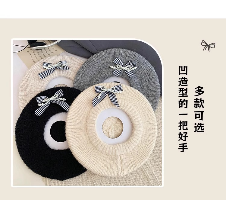 활 회색 베레모 여성의 가을과 겨울 따뜻한 니트 봉제 꽃 봉제 화가의 모자 큰 머리 올 매치 모자스토어 가기