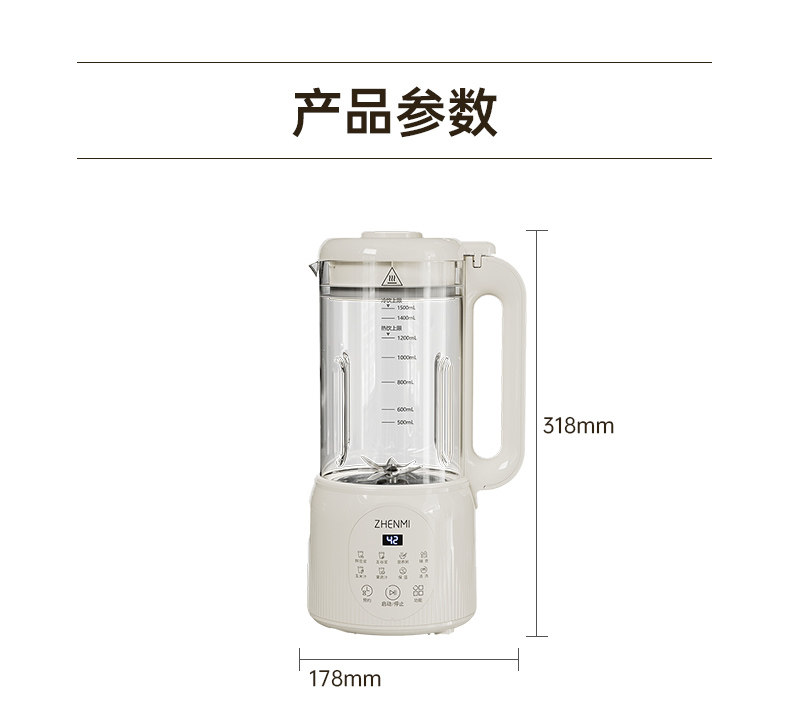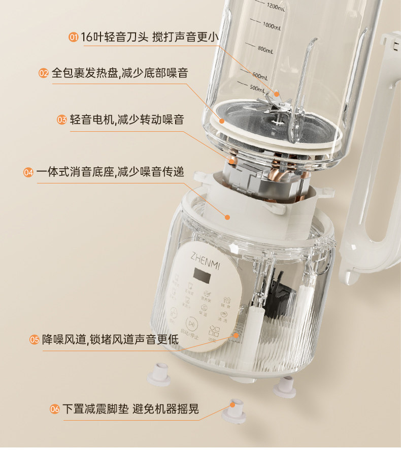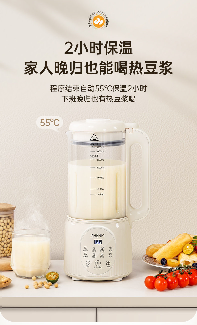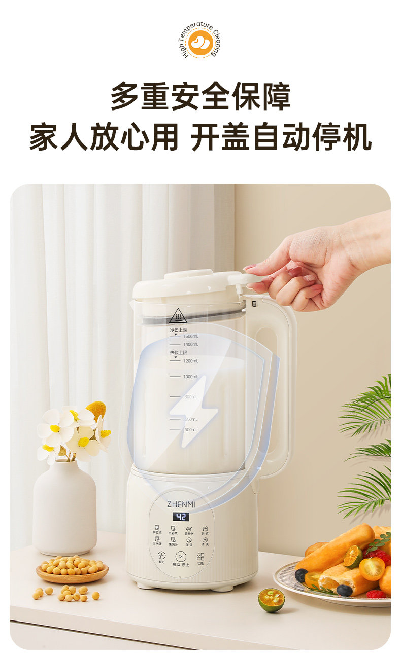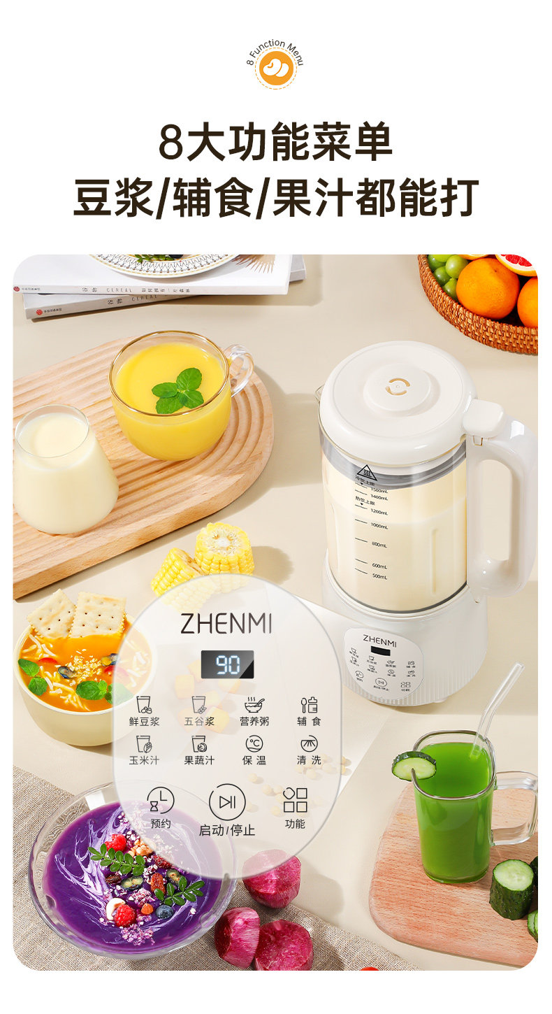Zhen Mi 가시 빛 소리 벽 속보 기계 1500ML 홈 두유 기계 다기능 요리 기계 24 시간 예약 지능형