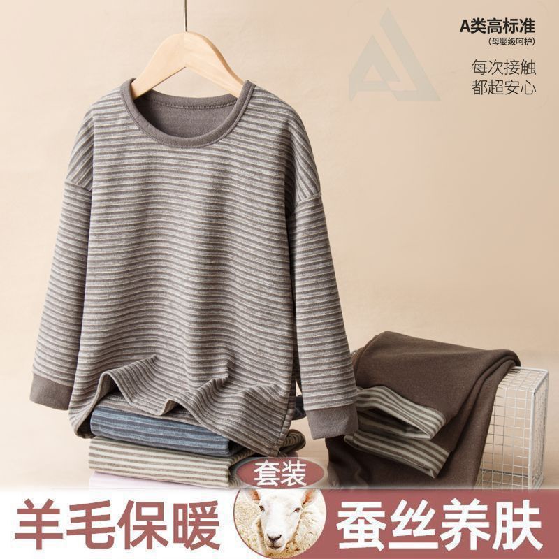 가을과 겨울 세트 어린이 열 속옷 기모 양모 실크 가을 옷 소년 소녀를위한 가을 바지