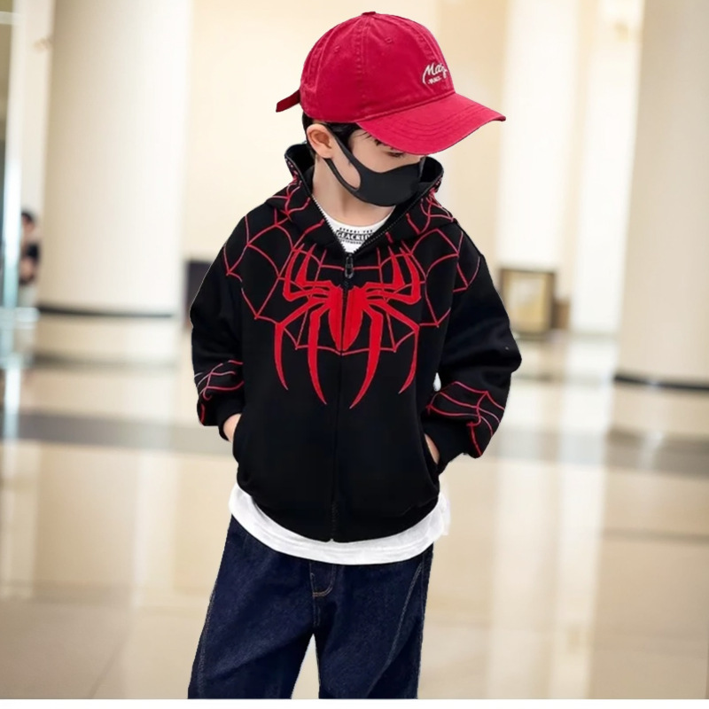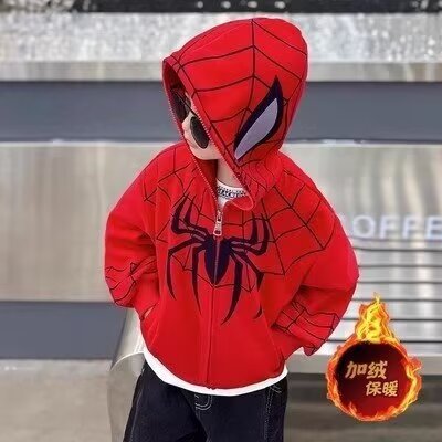소년 스파이더 맨 어린이 긴 소매 스웨트 셔츠 새로운 2024 중 큰 어린이 후드 스트리트 보이즈 코트 아동복 도매