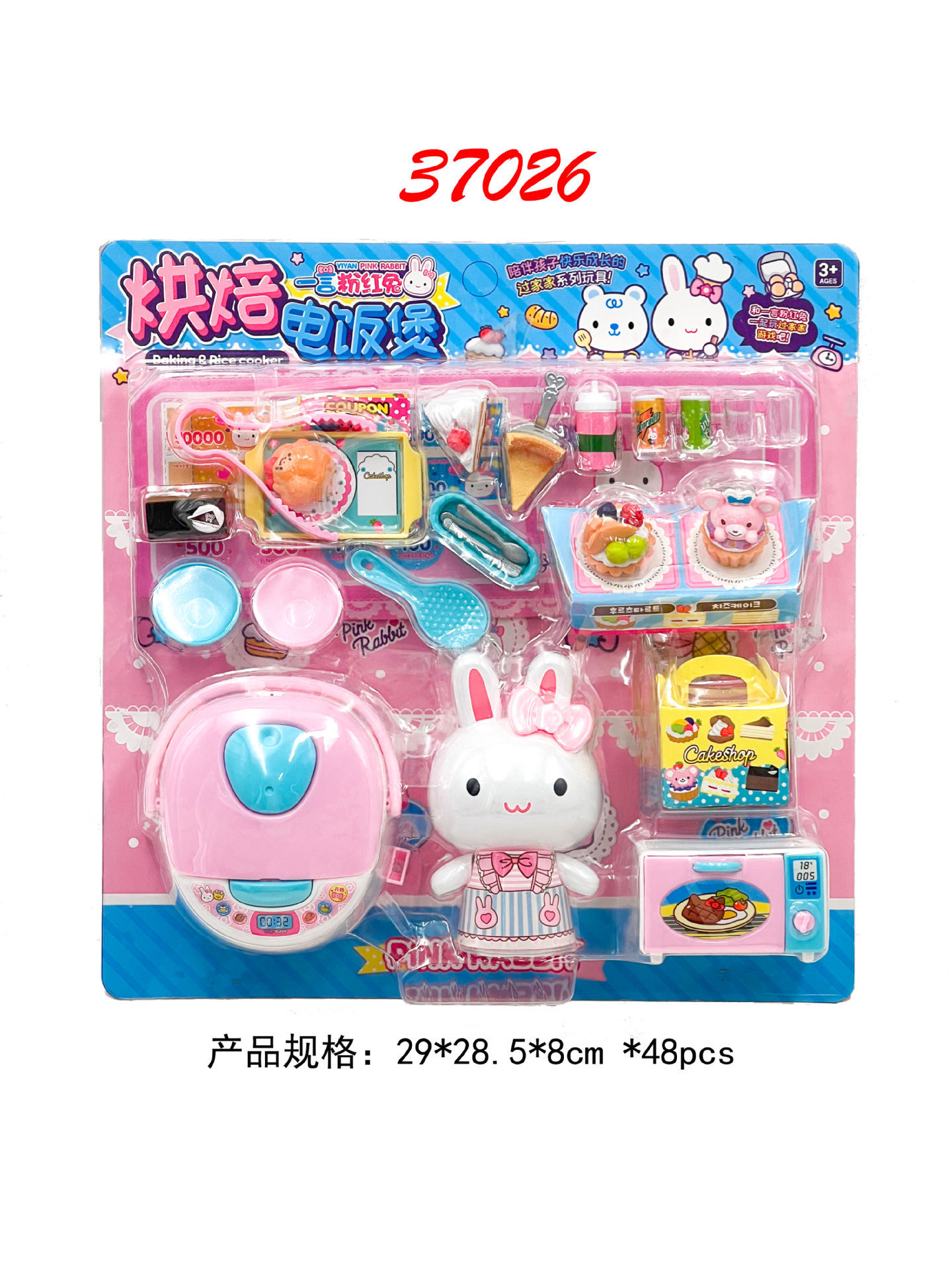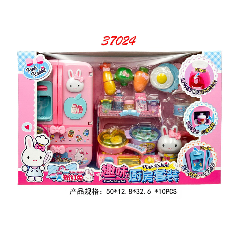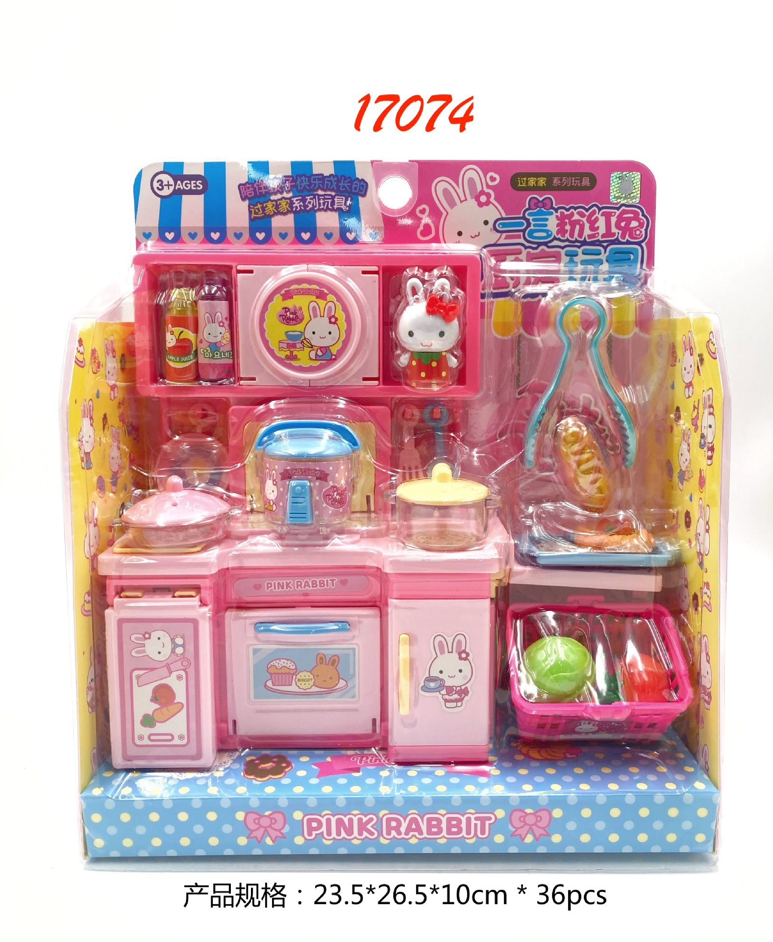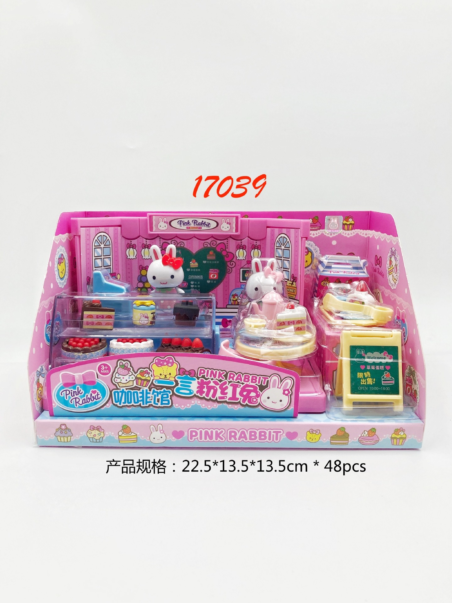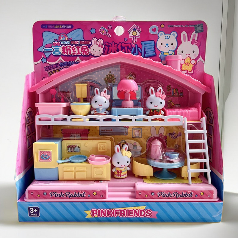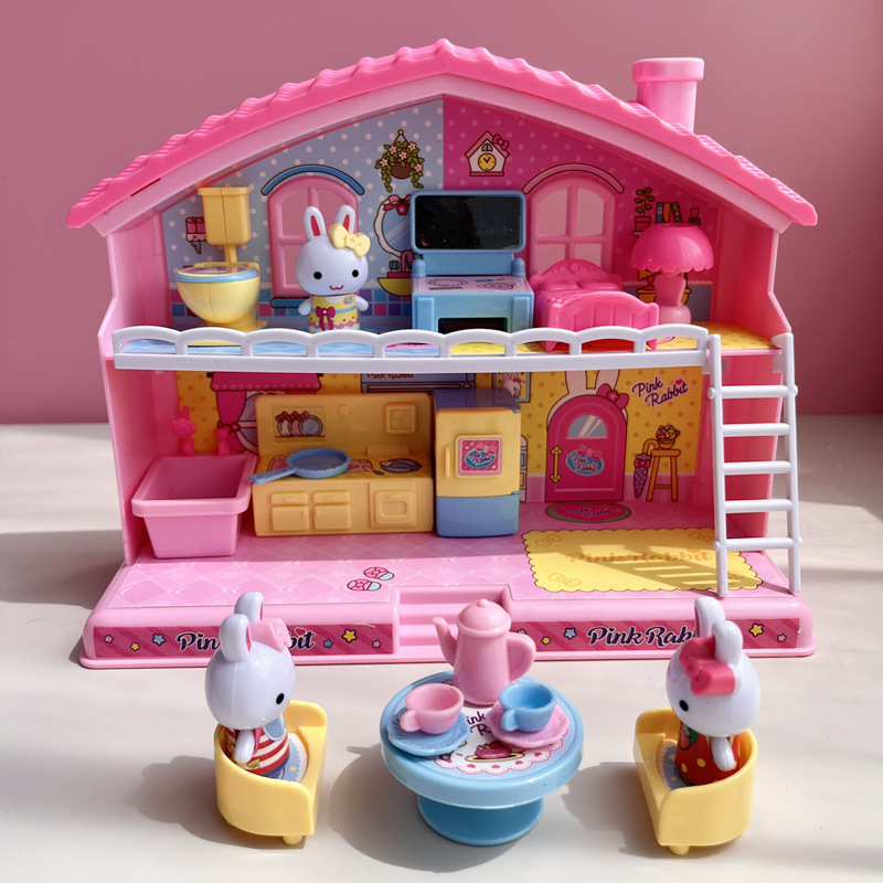 한 단어 핑크 토끼 미니 오두막 소녀 아기 놀이 집 어린이 장난감 시뮬레이션 주방 세탁기 장난감스토어 가기