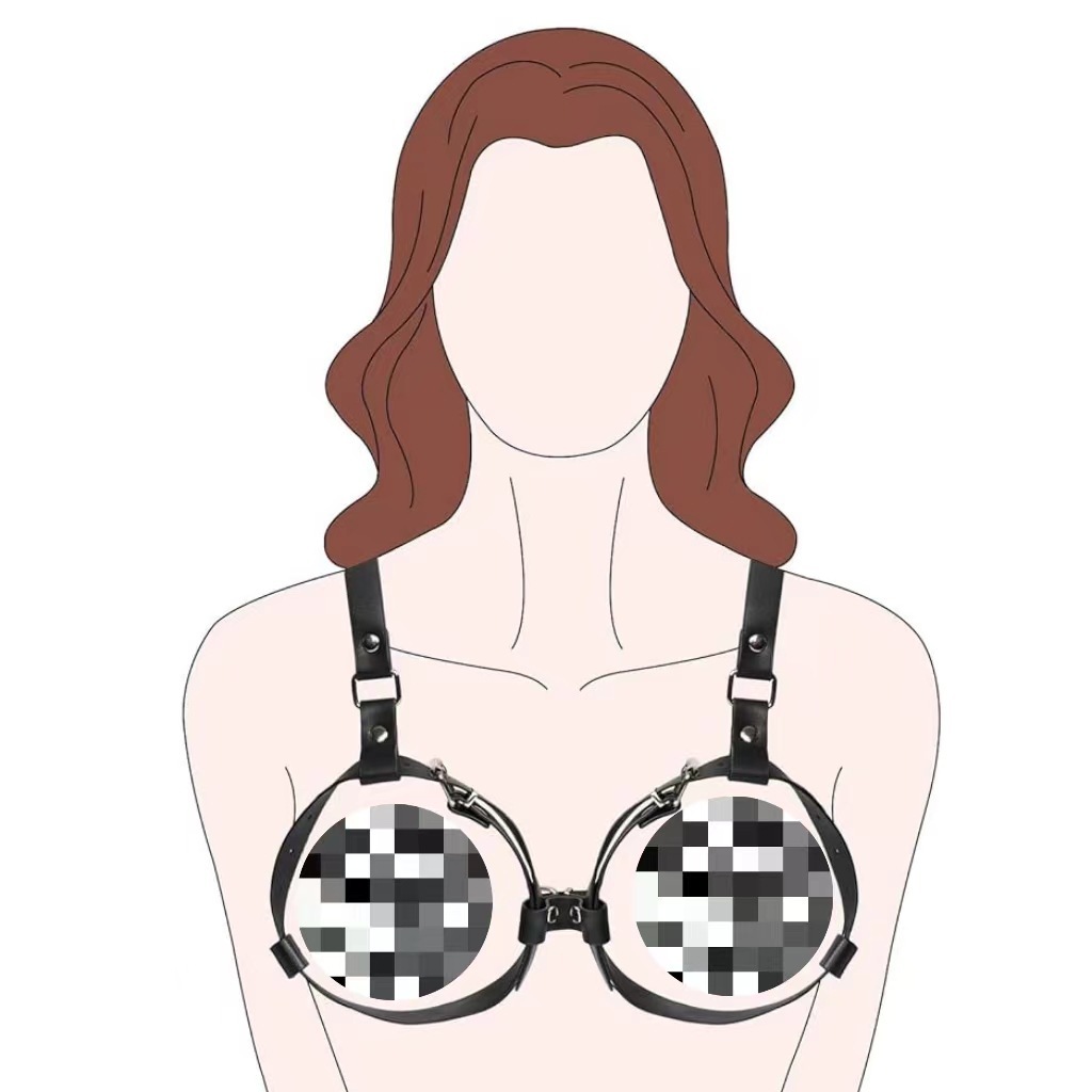 공장 도매 sm 가죽 브라 조절형 링 브라, 독특한 섹시한 가죽 가슴 구속 브라스토어 가기