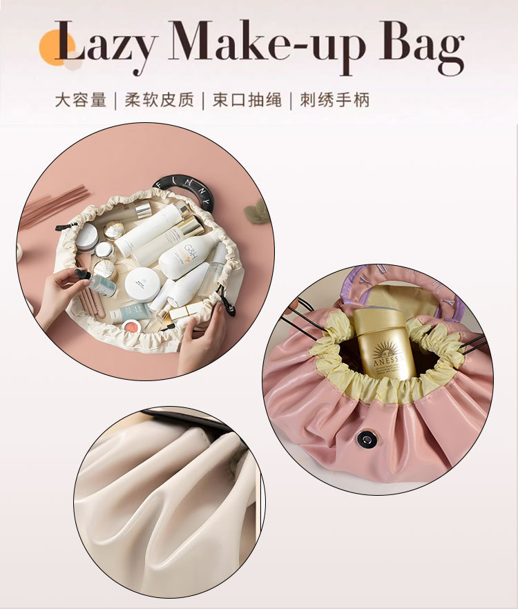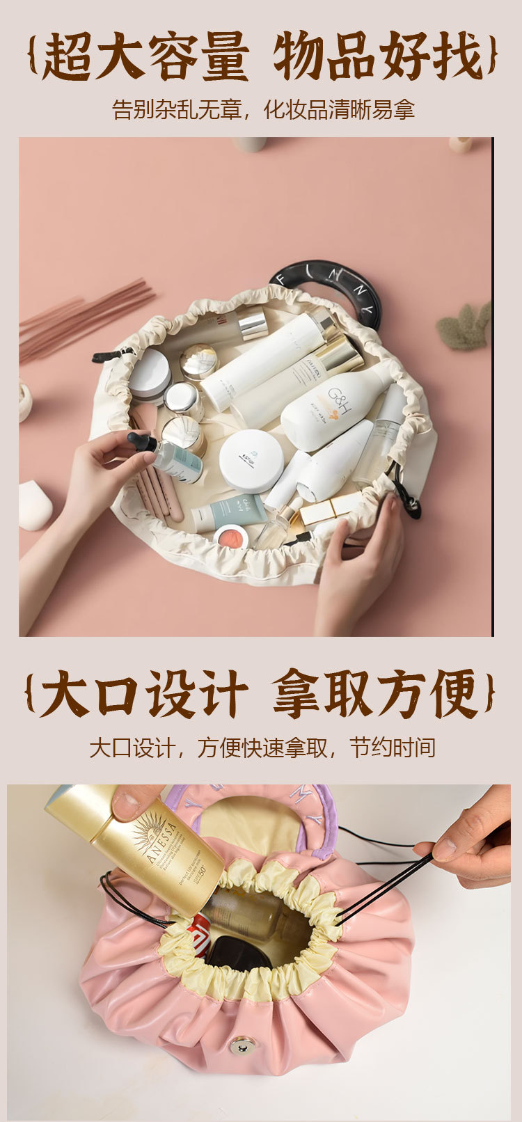 새로운 게으른 화장품 가방 대용량 휴대용 저장 가방 여행 보관 가방 서랍 끈 가방 방수 세척 가방