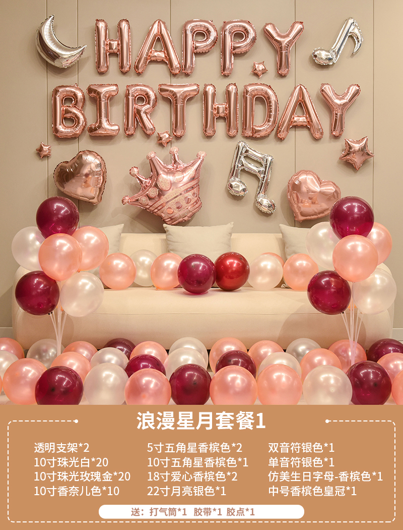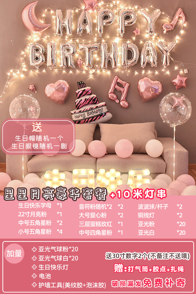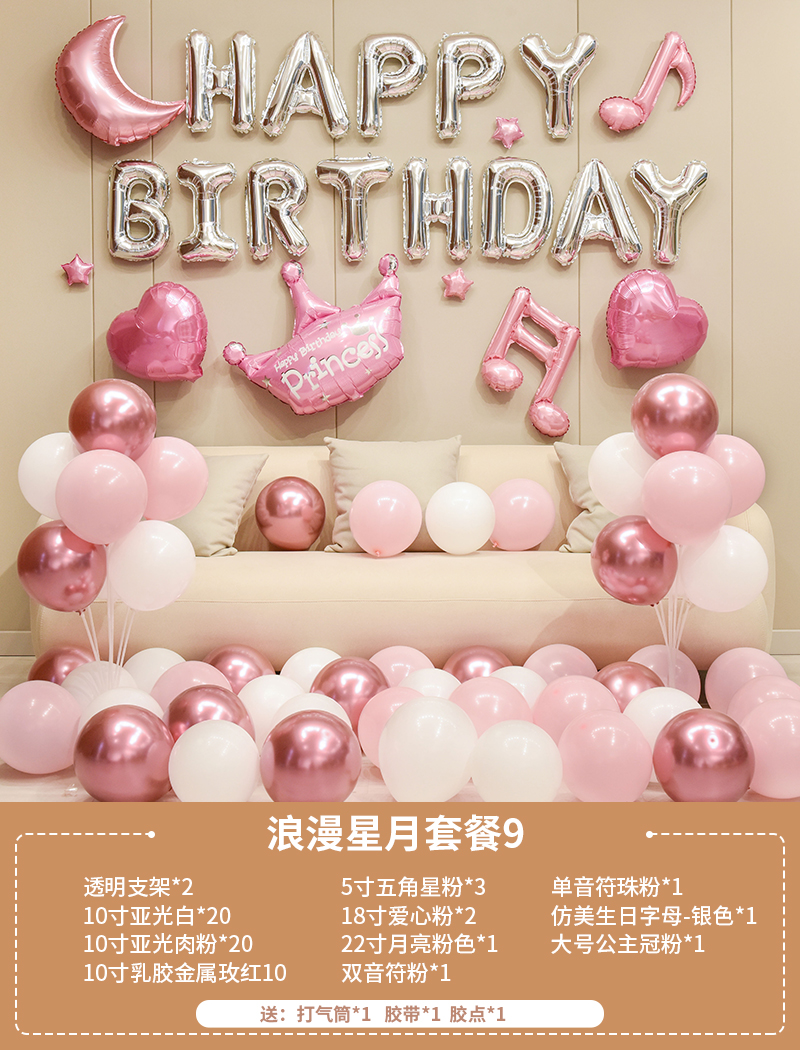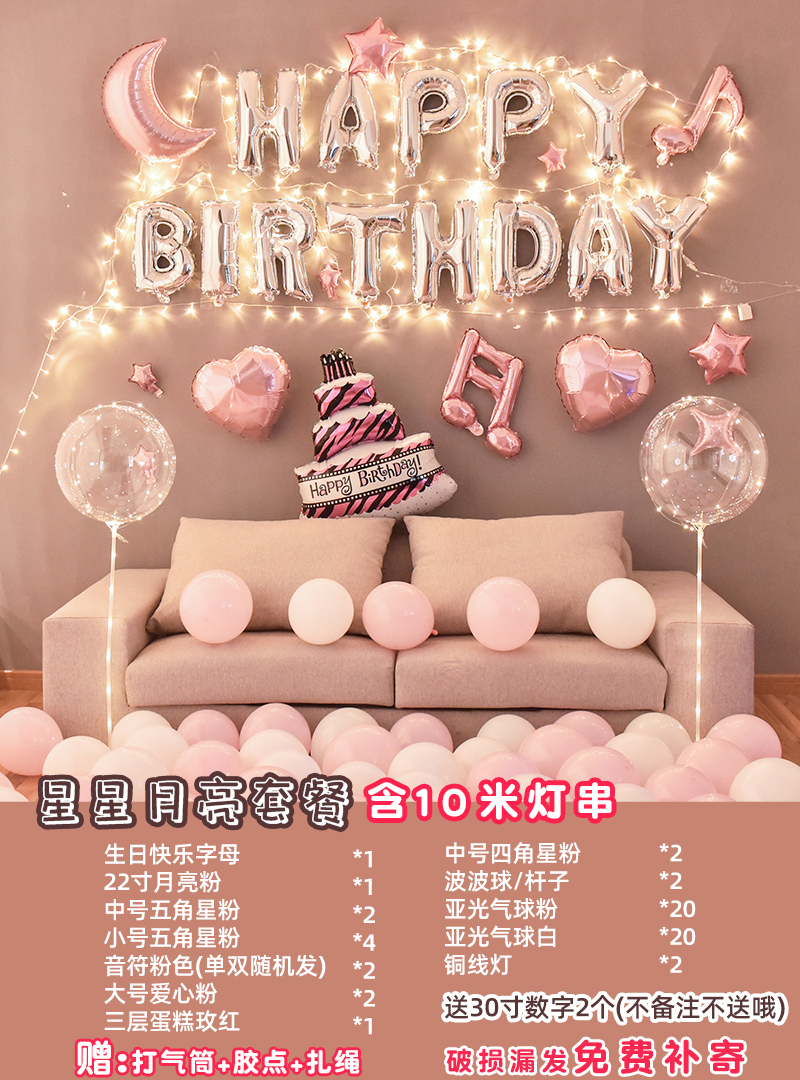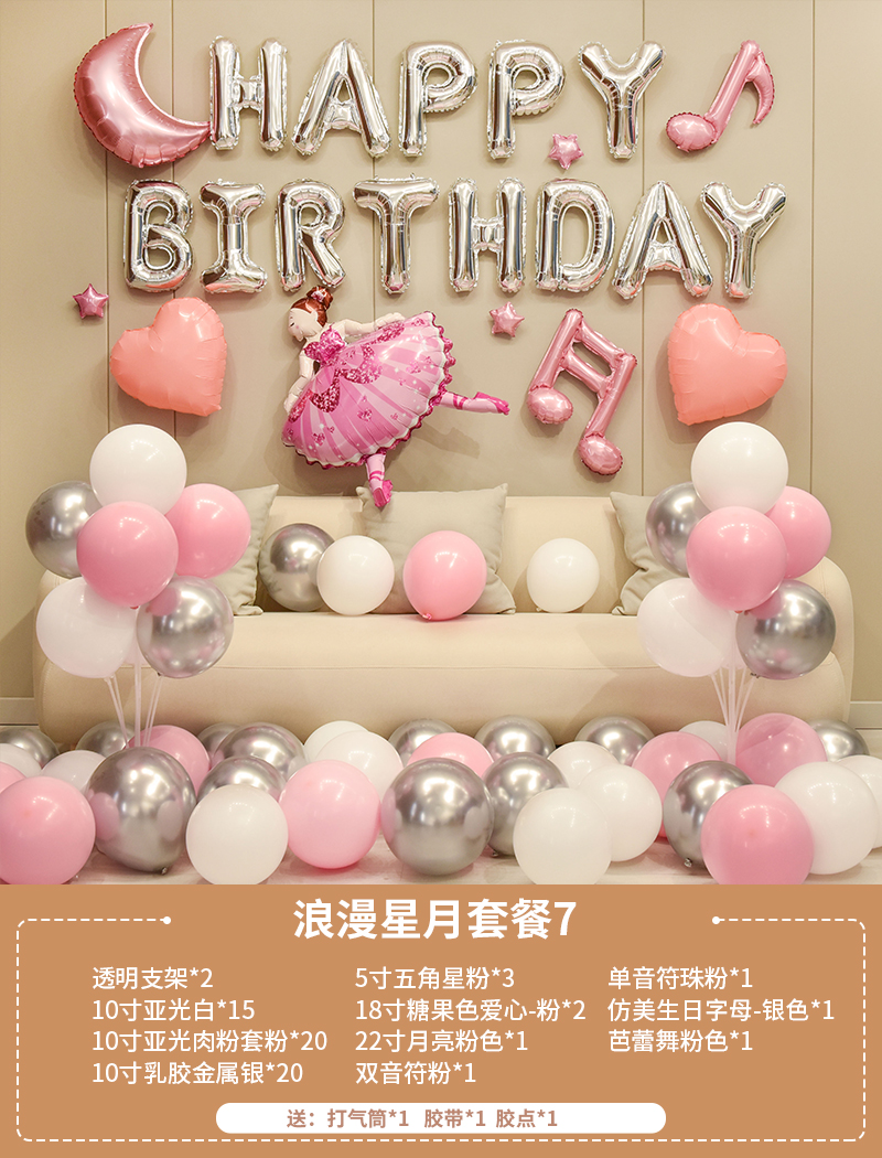 인터넷 연예인 소녀 생일 축하 풍선 장식 장면 배열 어린이 소녀 보물 파티 여신 배경 벽스토어 가기