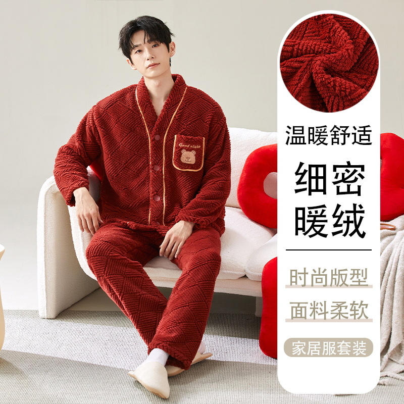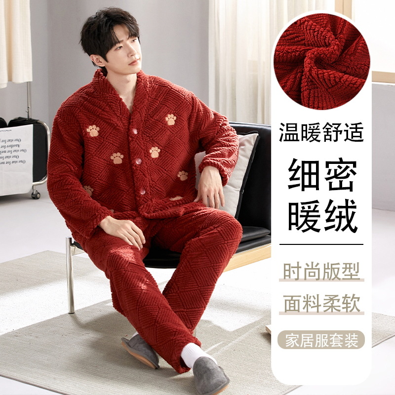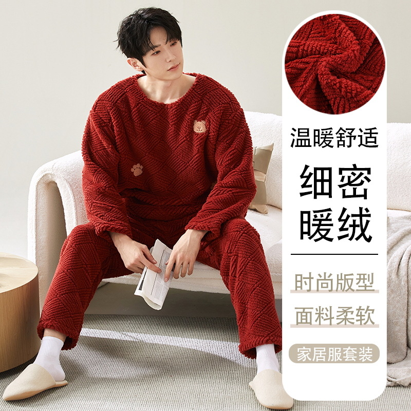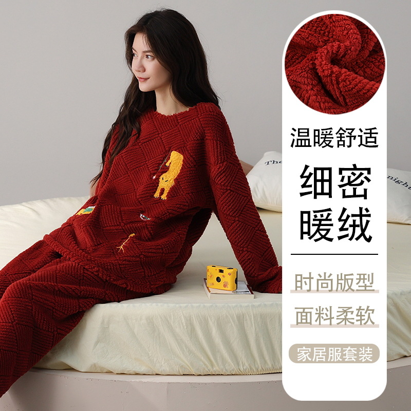 새로운 겨울 산호 양털 파자마 여성의 빨간 집 옷 남자의 간단한 캐주얼 플란넬 따뜻한 투피스 세트