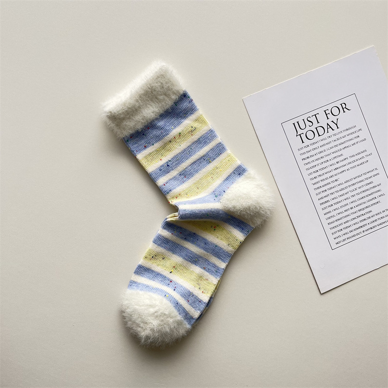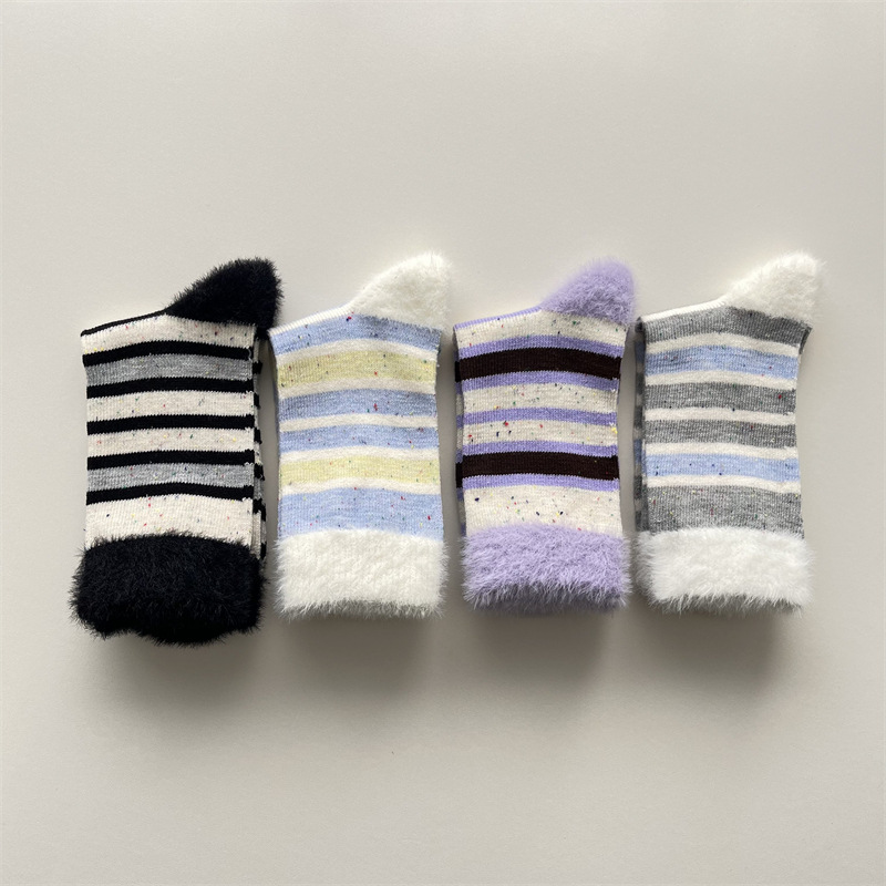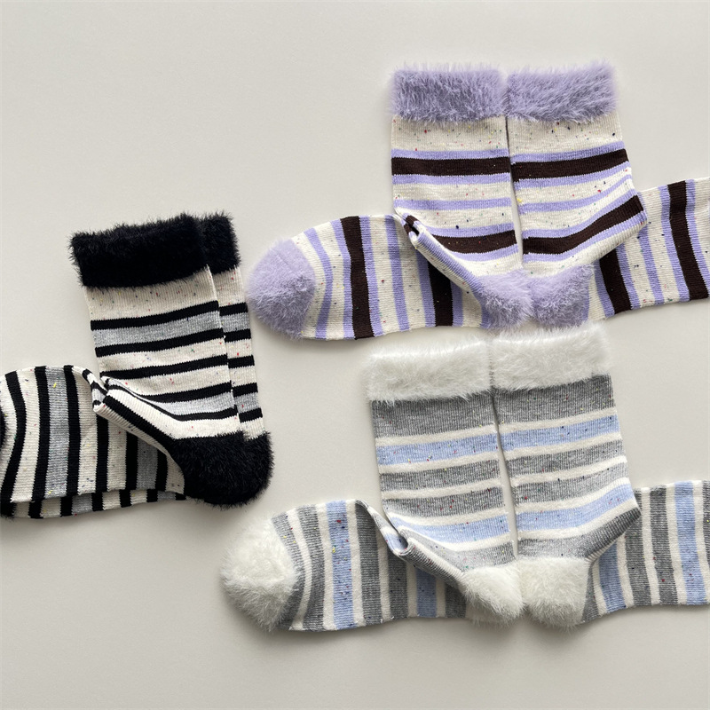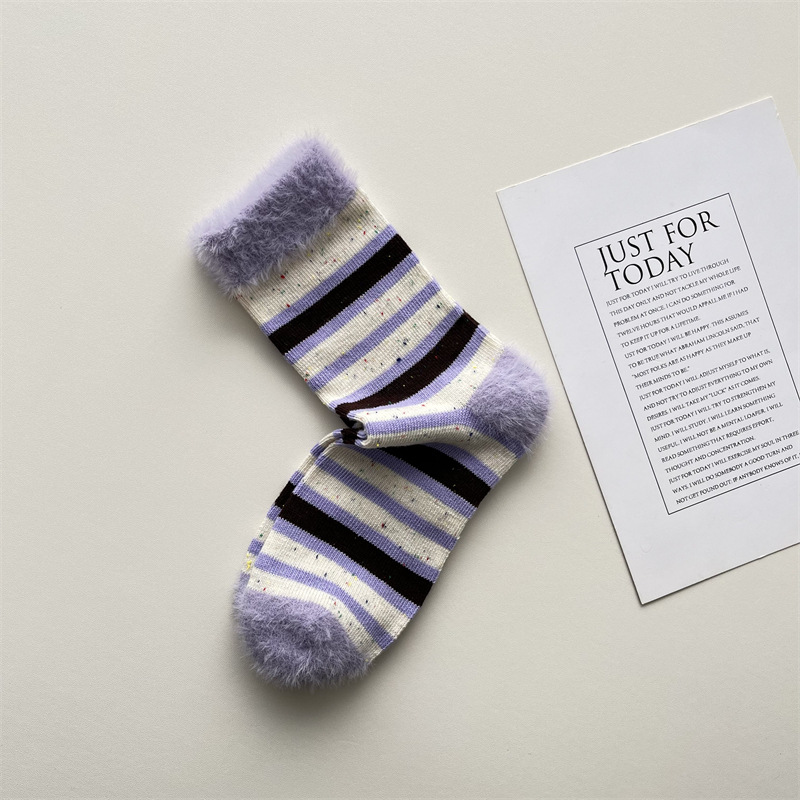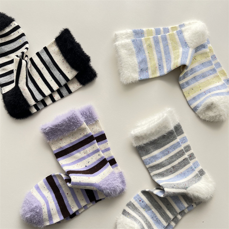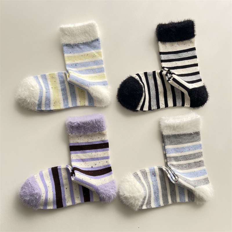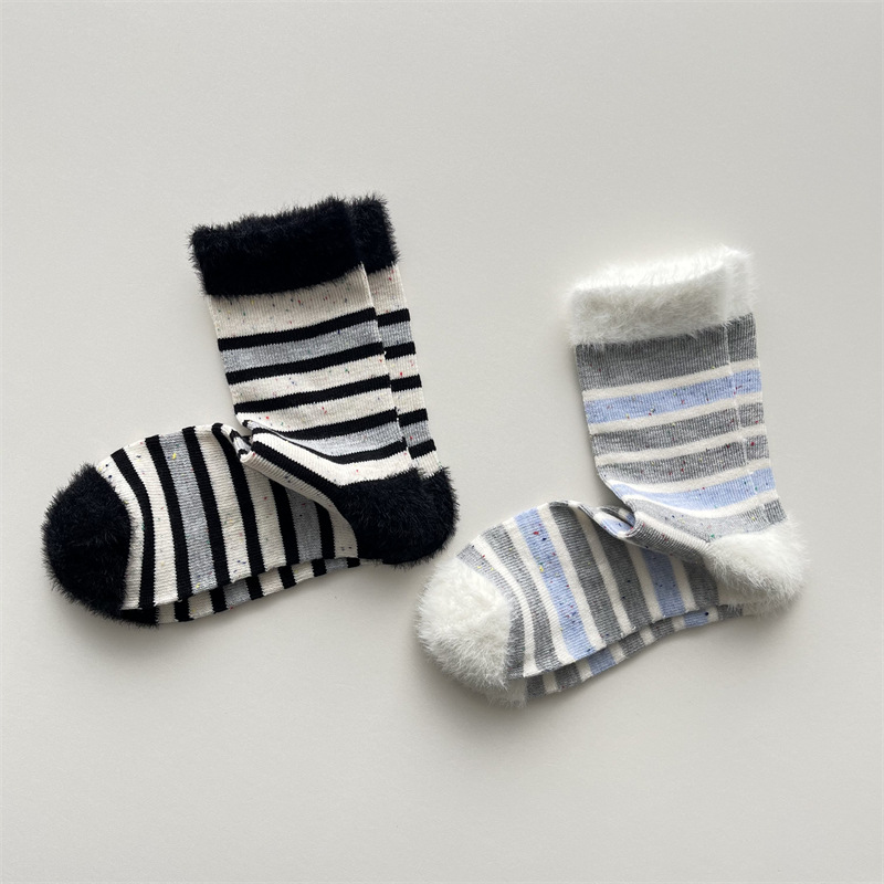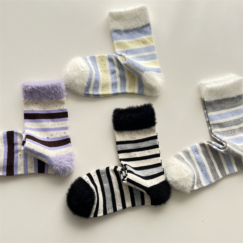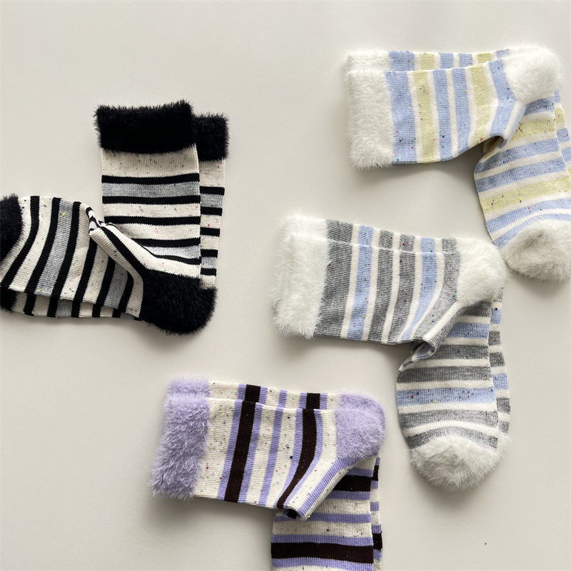 가을 · 겨울 신색원사 모피 중견 양말 한국 아카데미 스타일 스트라이프 스태킹 양말 심플한 빈티지 코튼 양말