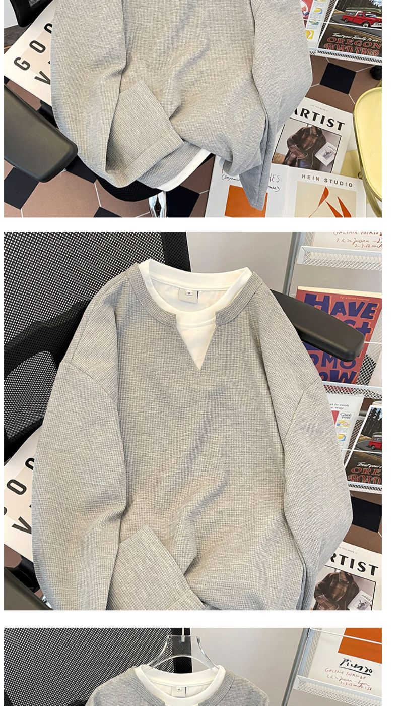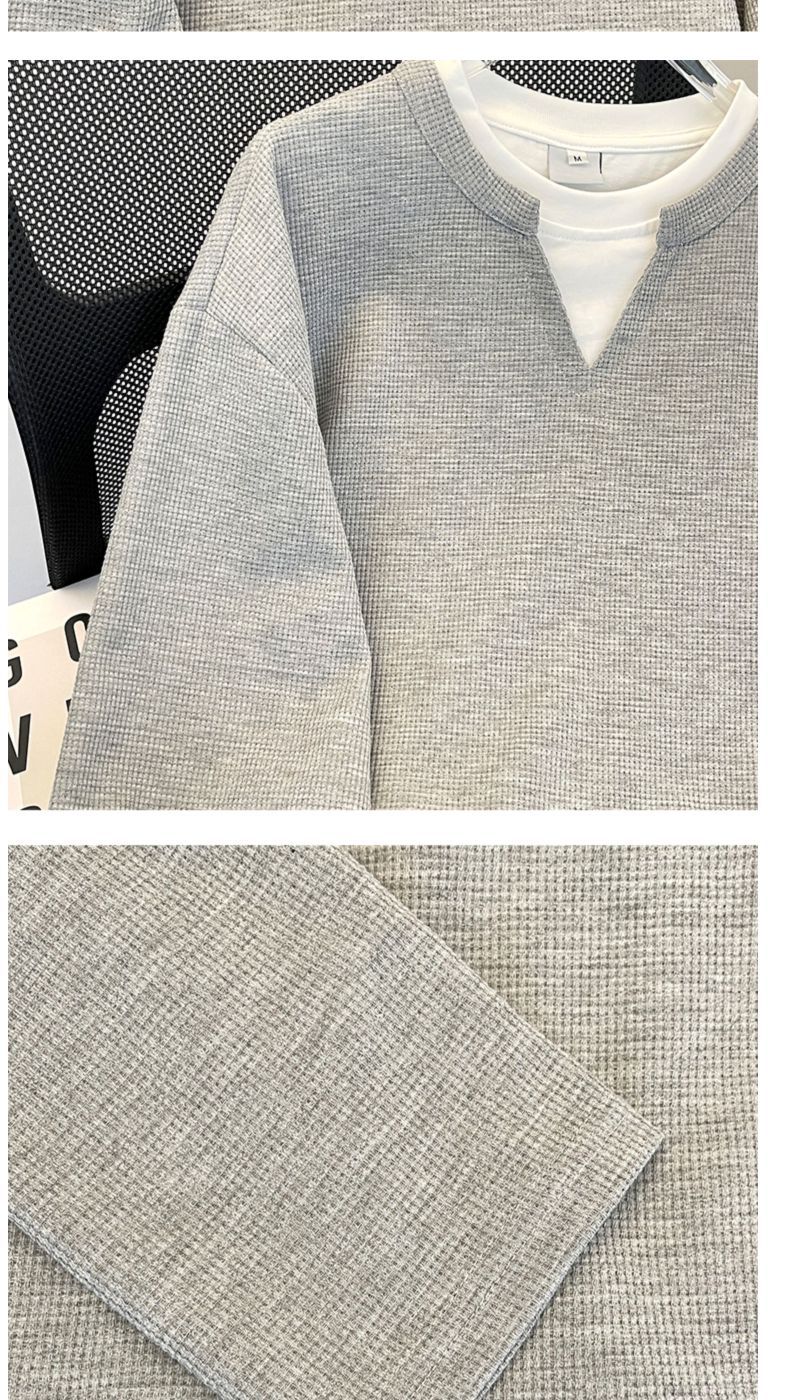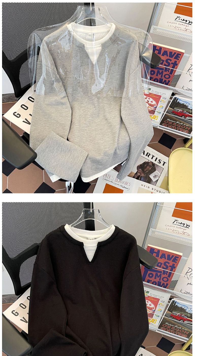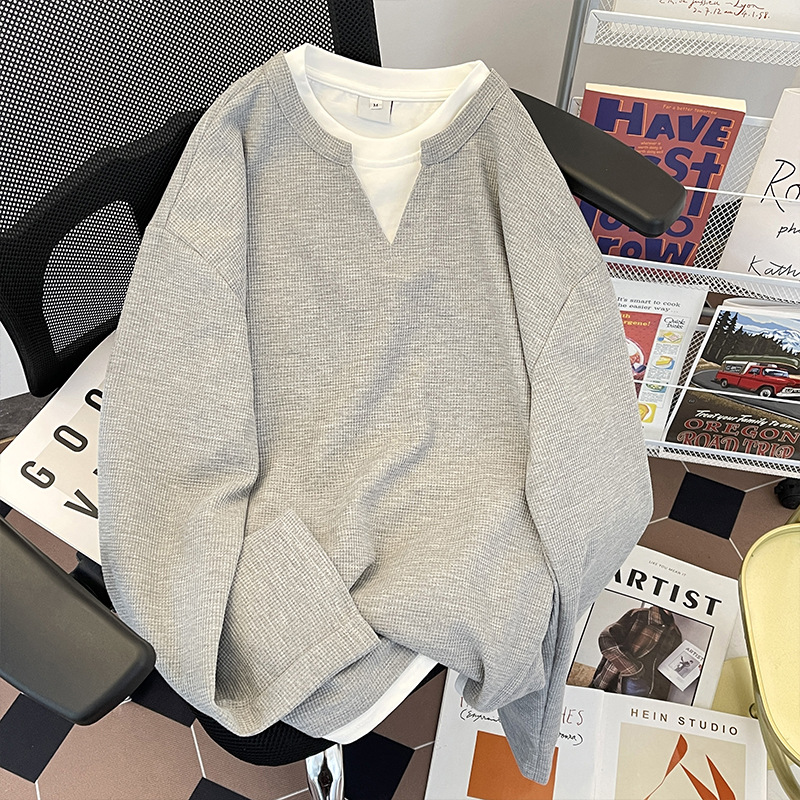 봄과 가을 와플 가짜 투피스 긴팔 티셔츠 남성용 클린 핏 트렌디 브랜드 심플 레트로 캐주얼 루즈 탑