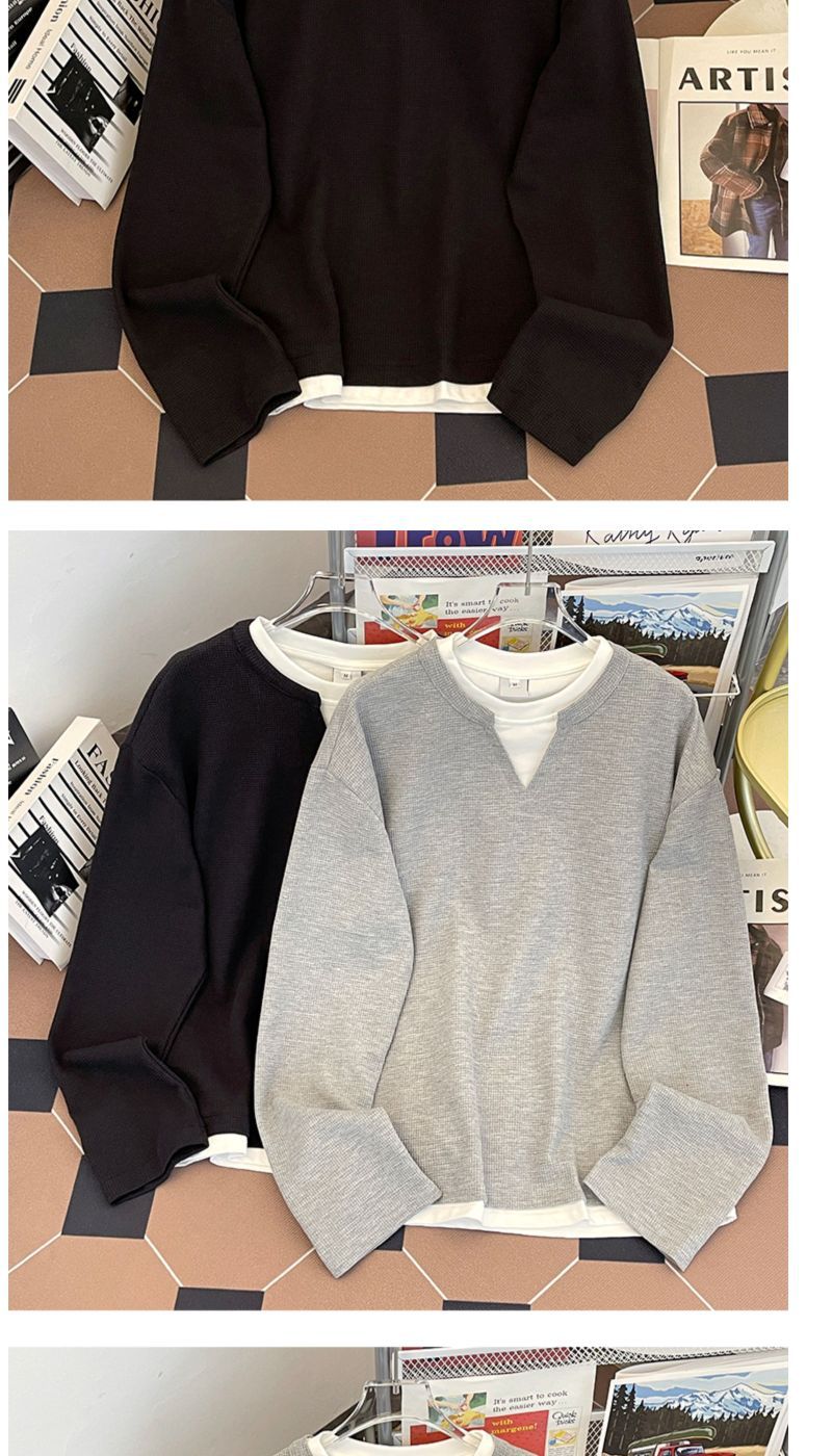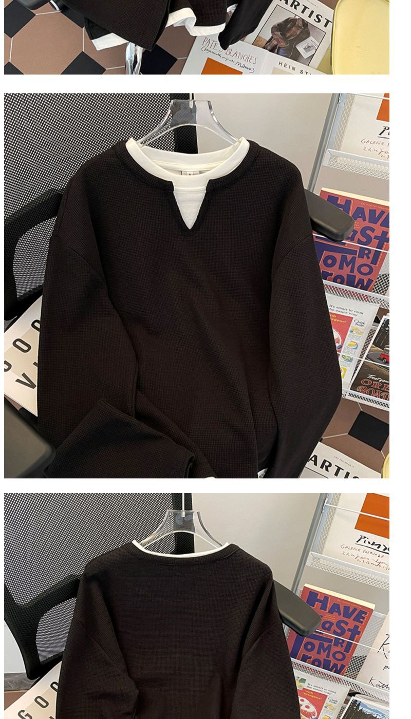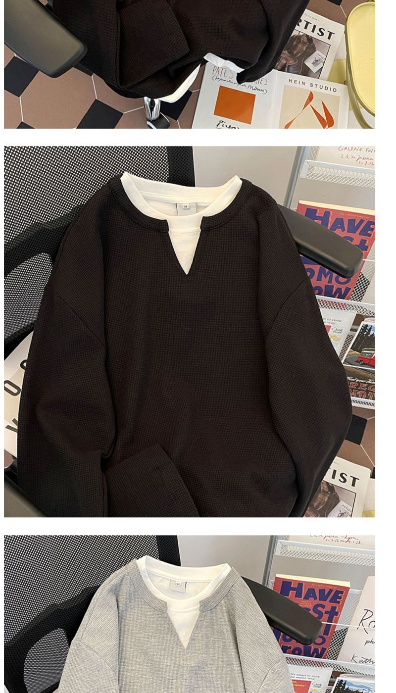 봄과 가을 와플 가짜 투피스 긴팔 티셔츠 남성용 클린 핏 트렌디 브랜드 심플 레트로 캐주얼 루즈 탑스토어 가기