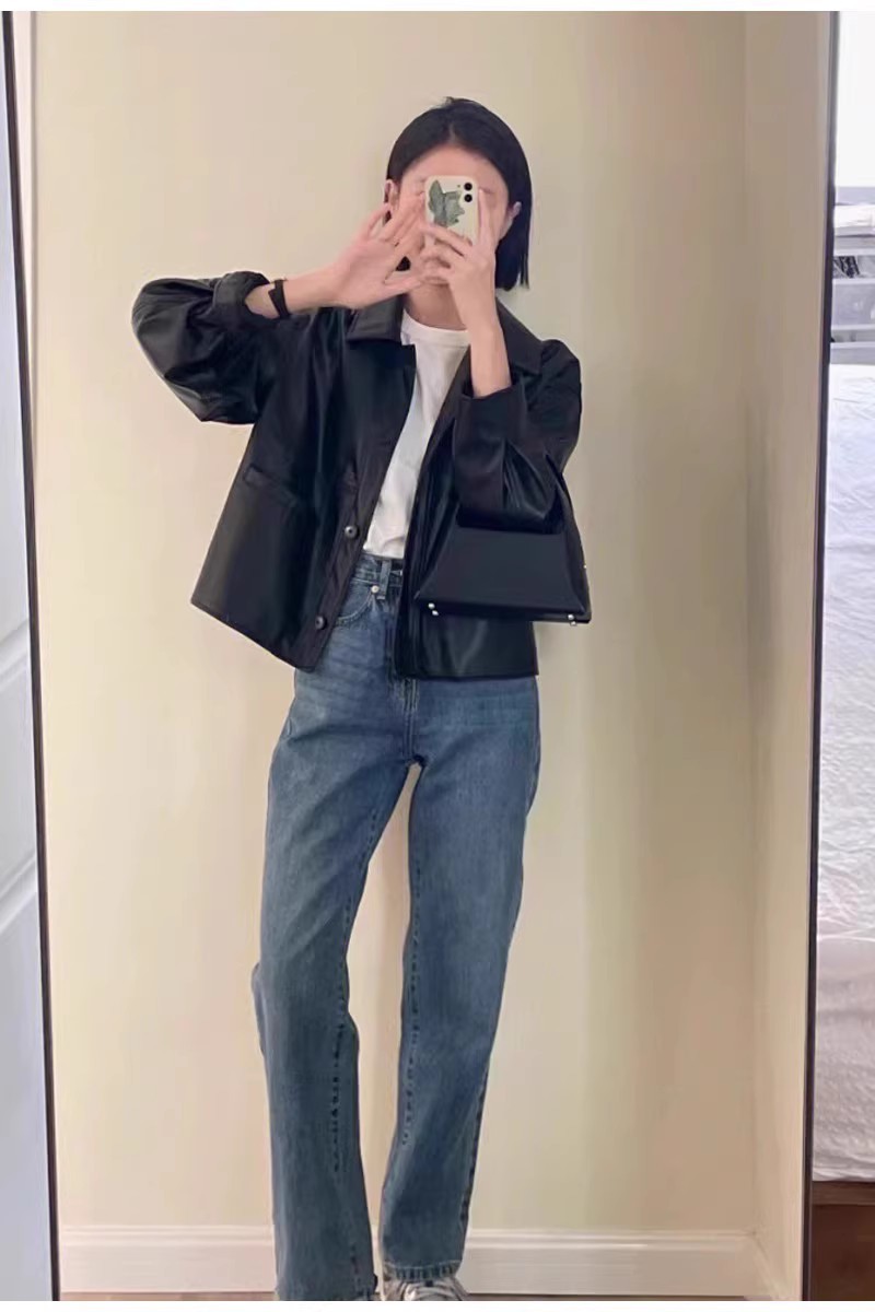 디자인감 있는 숏 PU 가죽 자켓 여성용 2025 가을 겨울 신상 홍콩 스타일 패션 쁘띠 캐주얼 만능 아이템스토어 가기