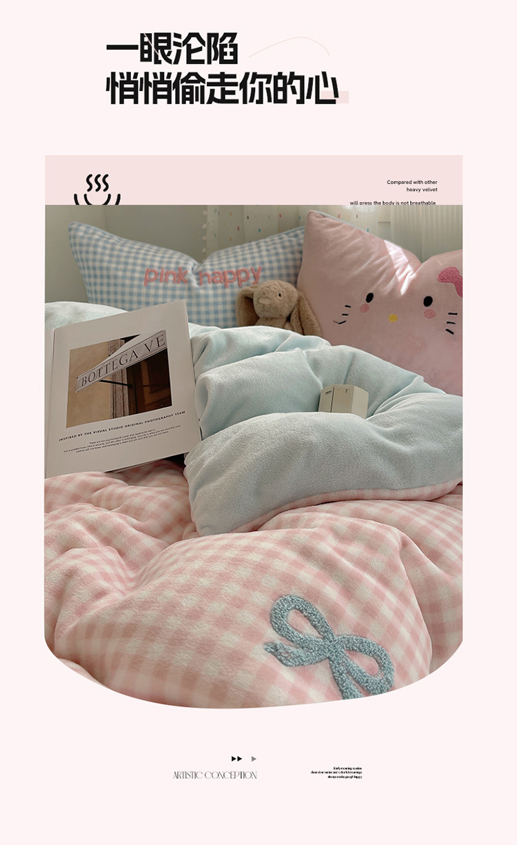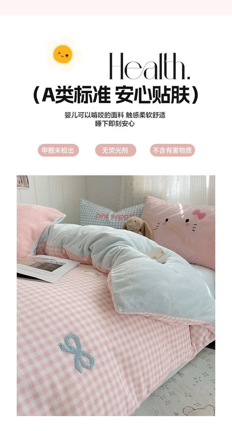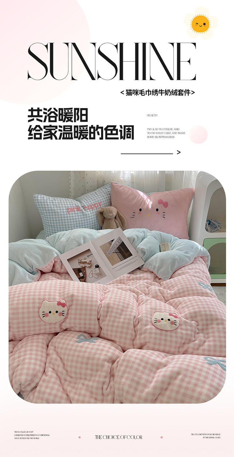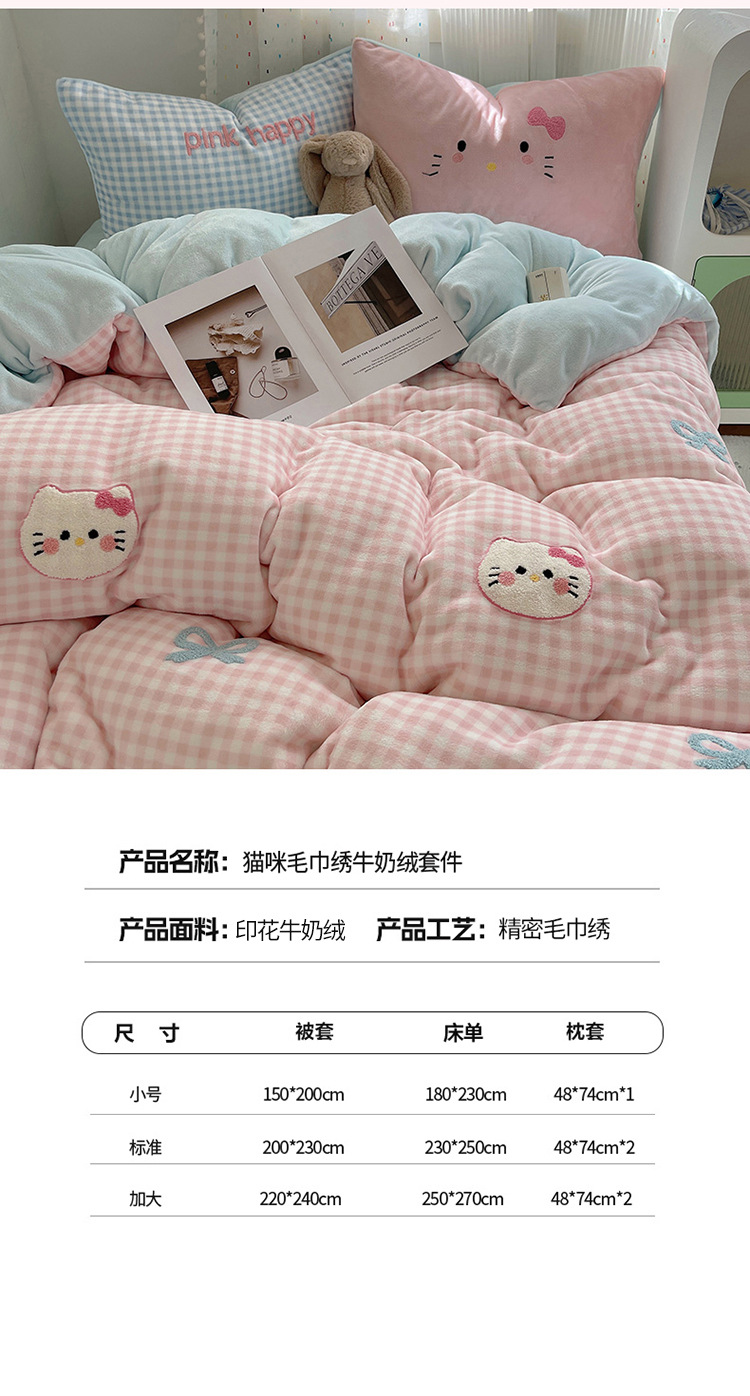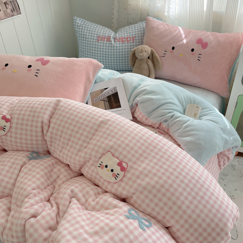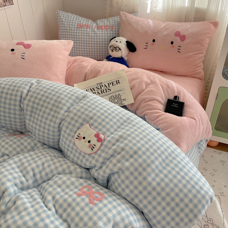 귀여운 수건 자수 우유 벨벳 4 피스 세트 플란넬 퀼트 커버 베이비 벨벳 학생 기숙사 3 피스 세트 침구스토어 가기