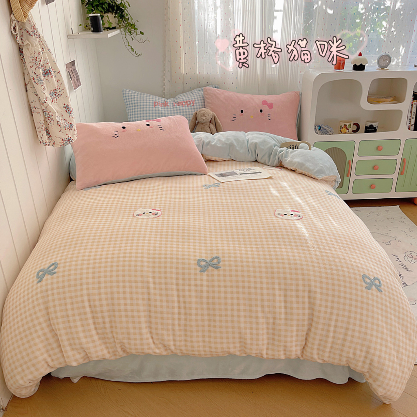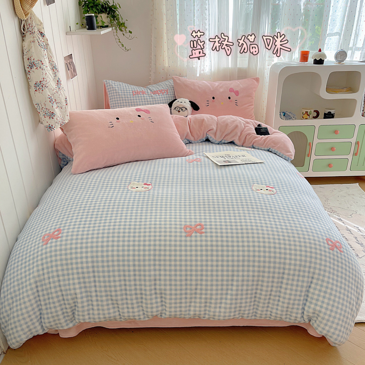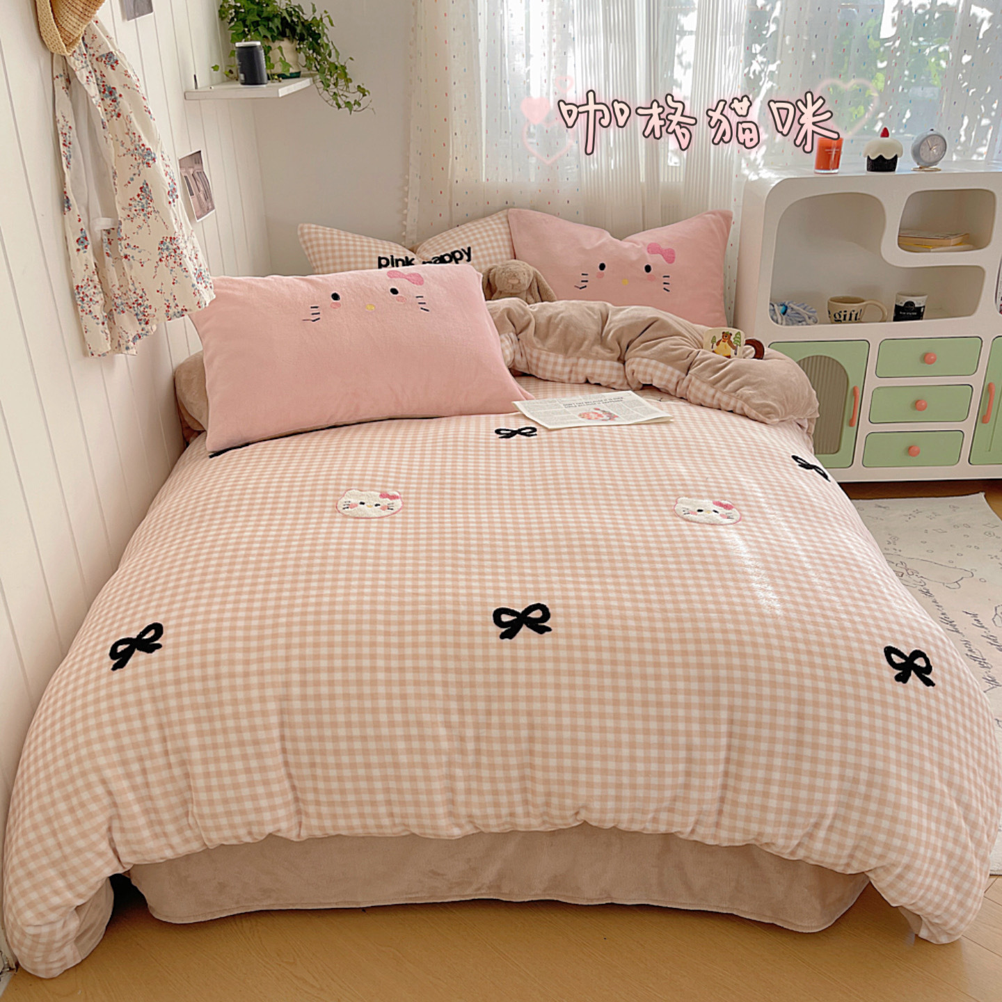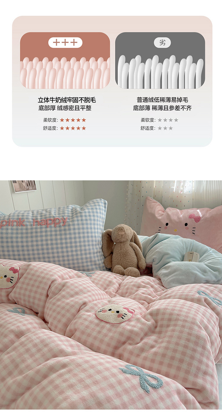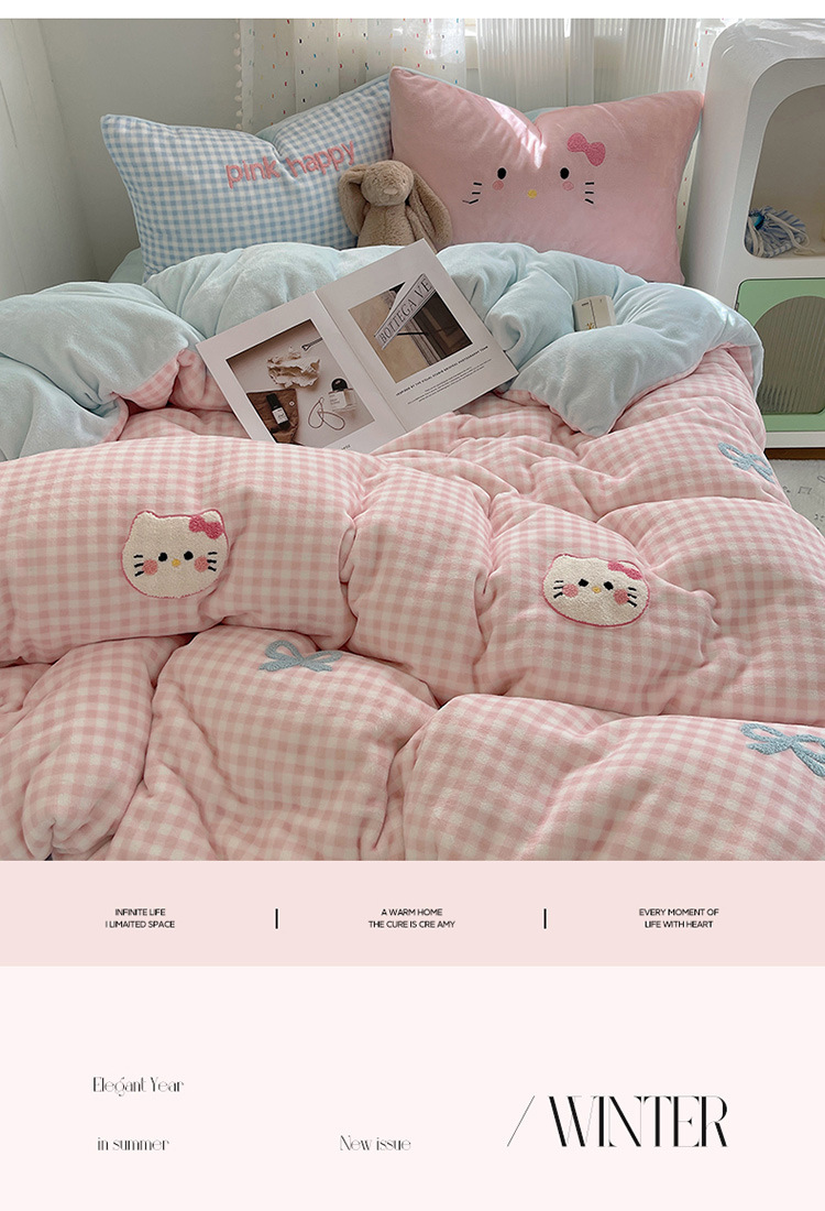 귀여운 수건 자수 우유 벨벳 4 피스 세트 플란넬 퀼트 커버 베이비 벨벳 학생 기숙사 3 피스 세트 침구스토어 가기
