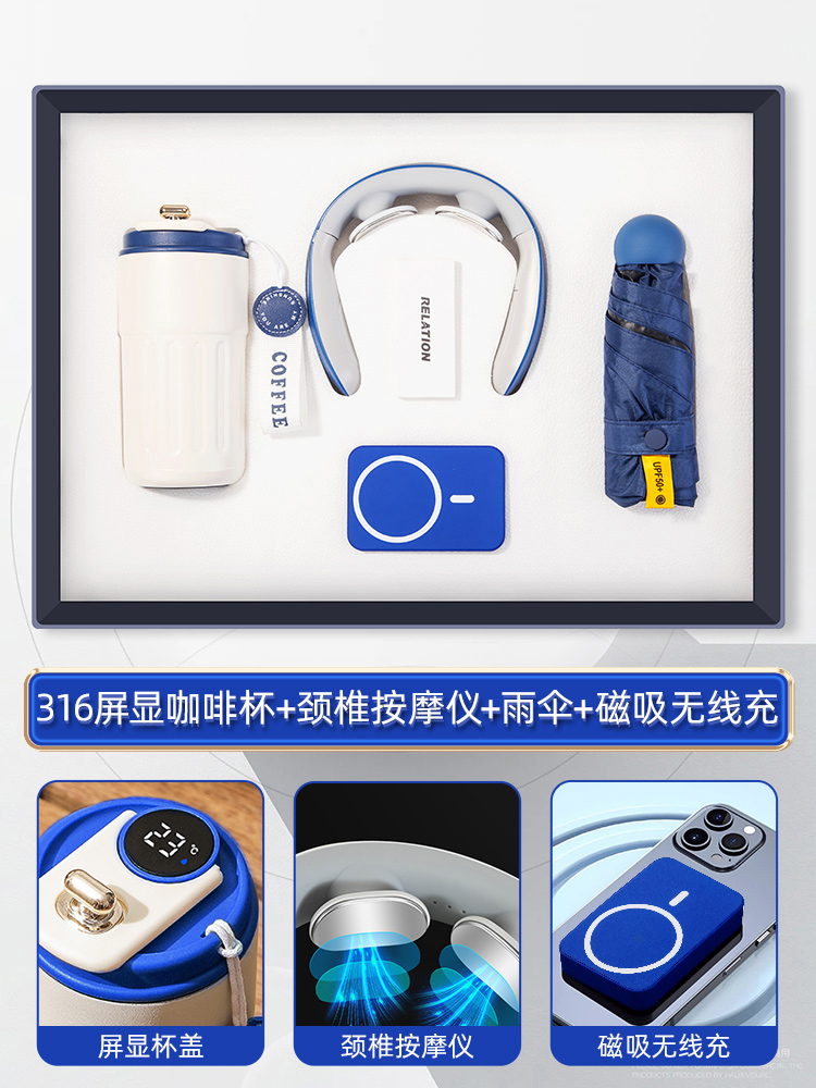 • 316 디지털 디스플레이 커피 컵 F6 음성 경추 악기 인터넷 연예인 우산 자기 보조베터리 4피스 세트 블루 6D 블루 박스