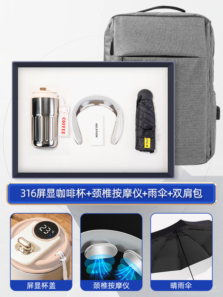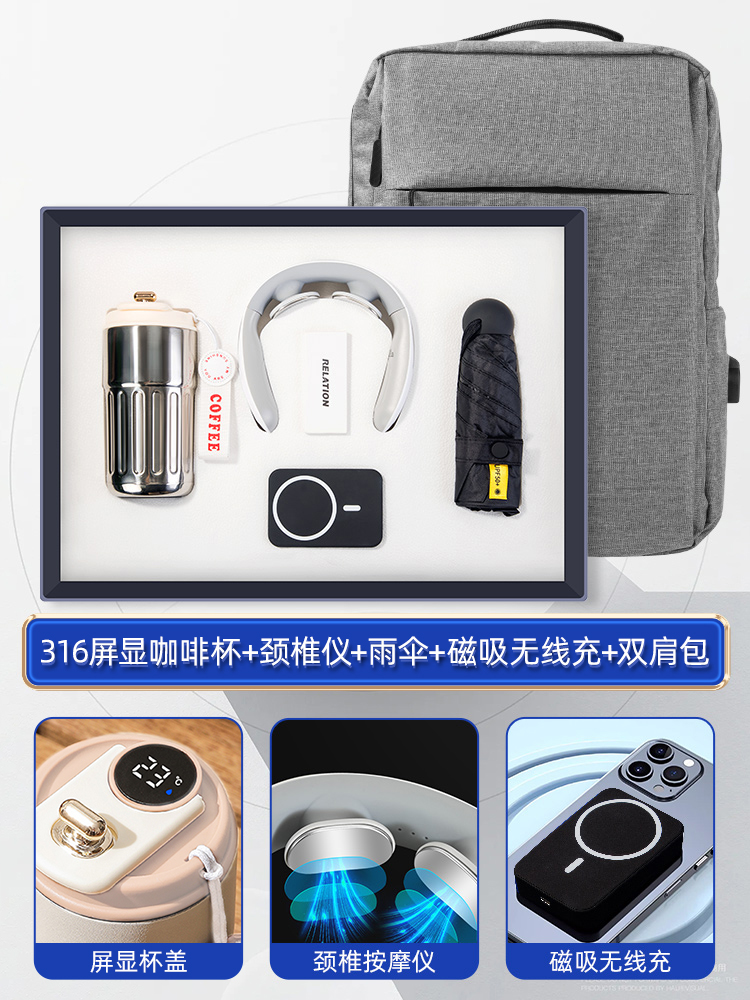• 316 디지털 디스플레이 커피 컵 경추 악기 인터넷 연예인 우산 자기 보조베터리 배낭 5피스 세트 블랙 6D 파란색 상자